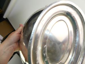 large silver plate two handled wine cooler, 14" x 8" x 10"