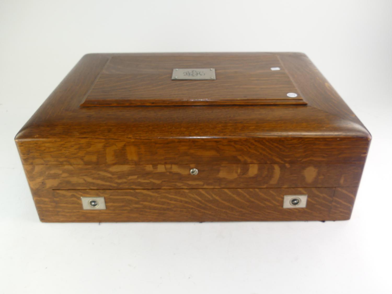 early 20th century large oak flatware canteen, 9" x 25" x 19 1/2"