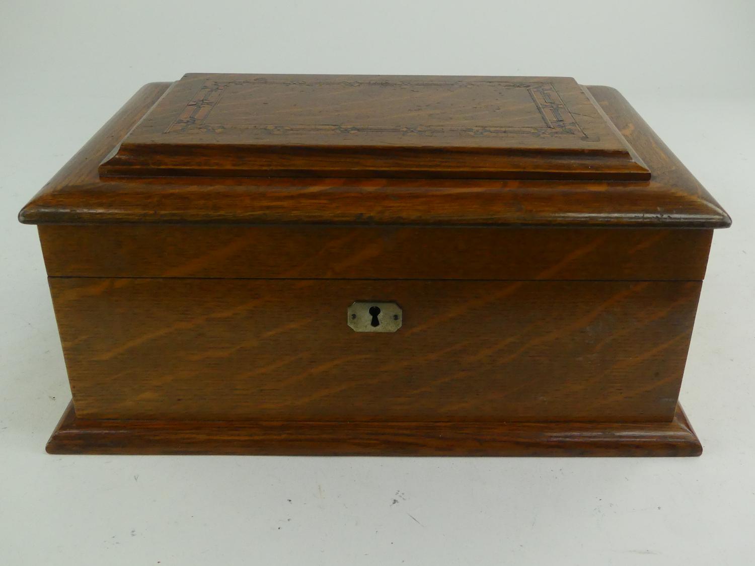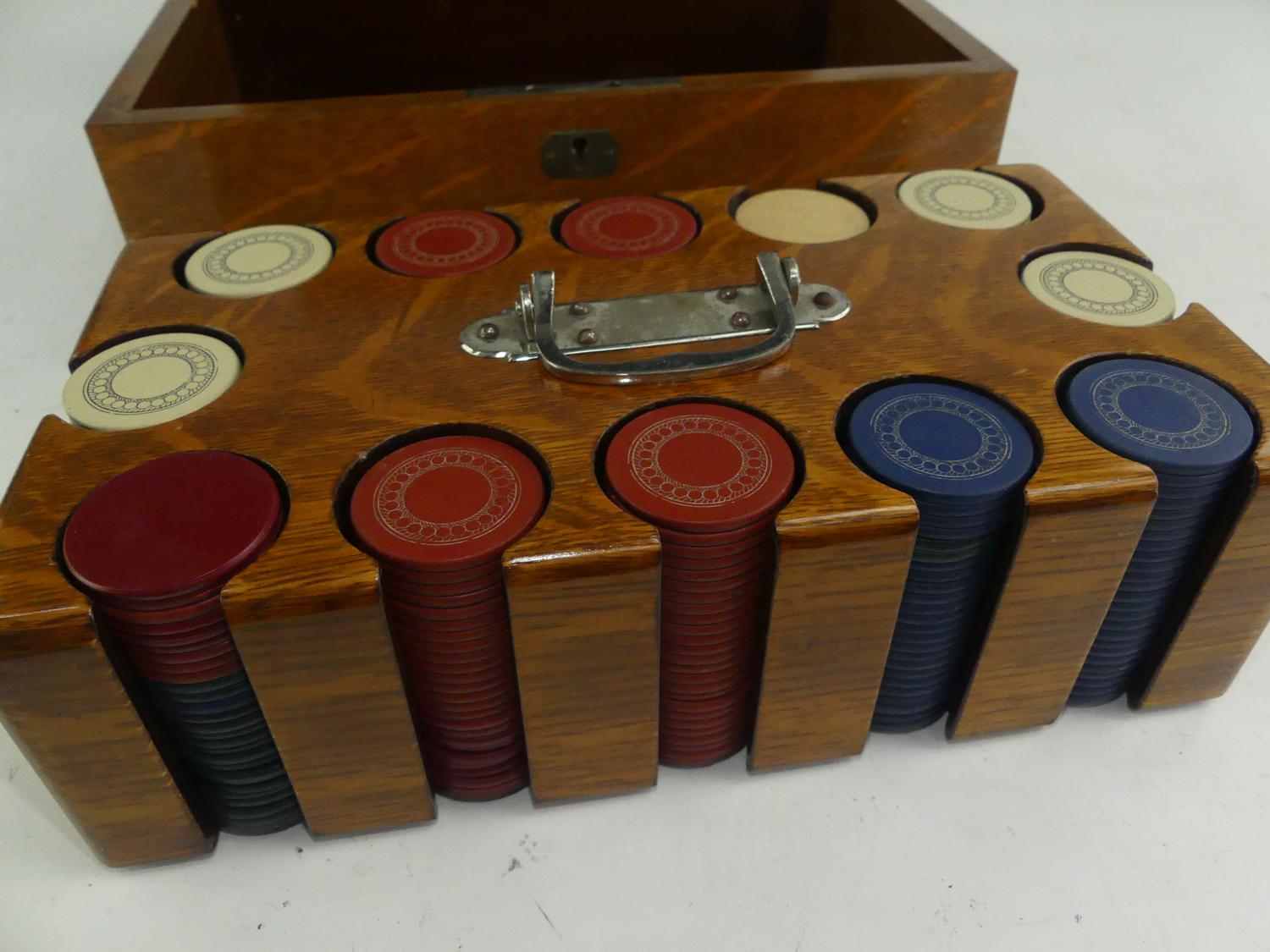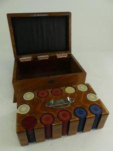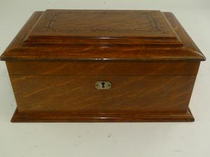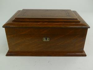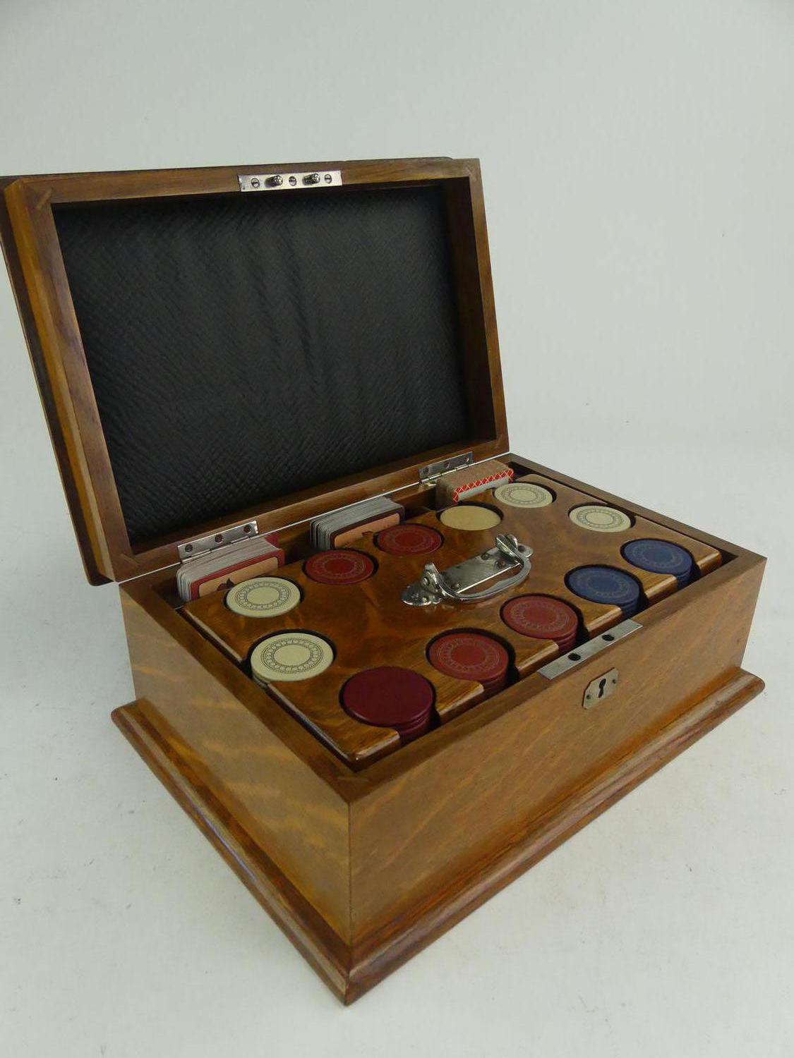 inlaid tiger oak games box, purchased from the edgar kaiser jr. estate, lunds auctioneers, victoria bc