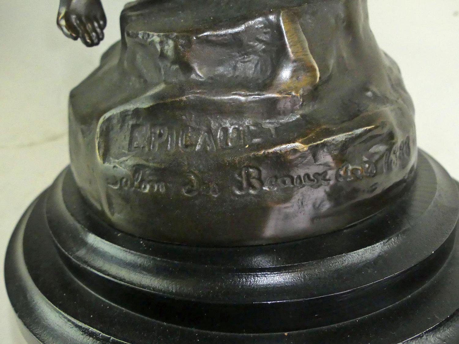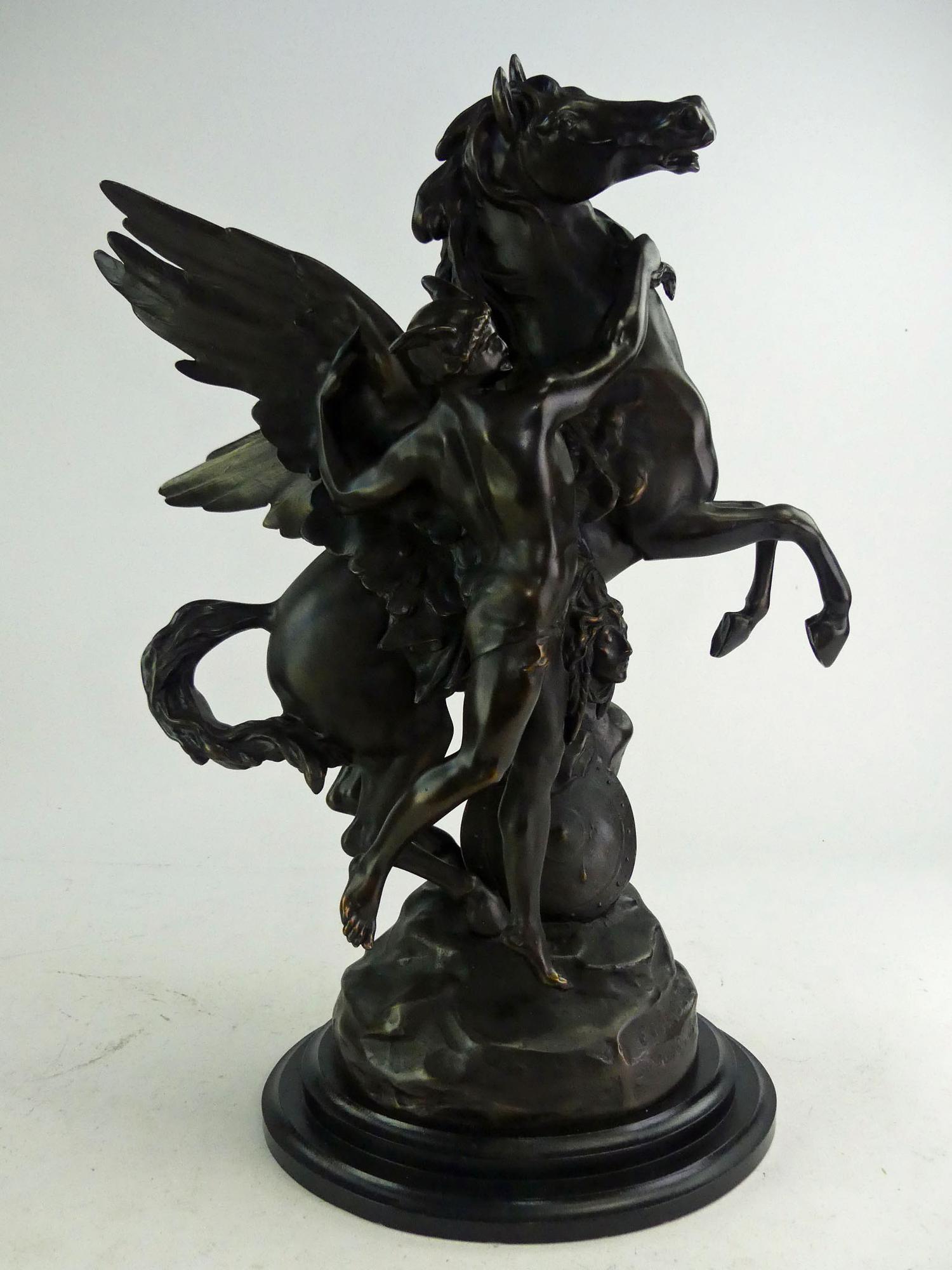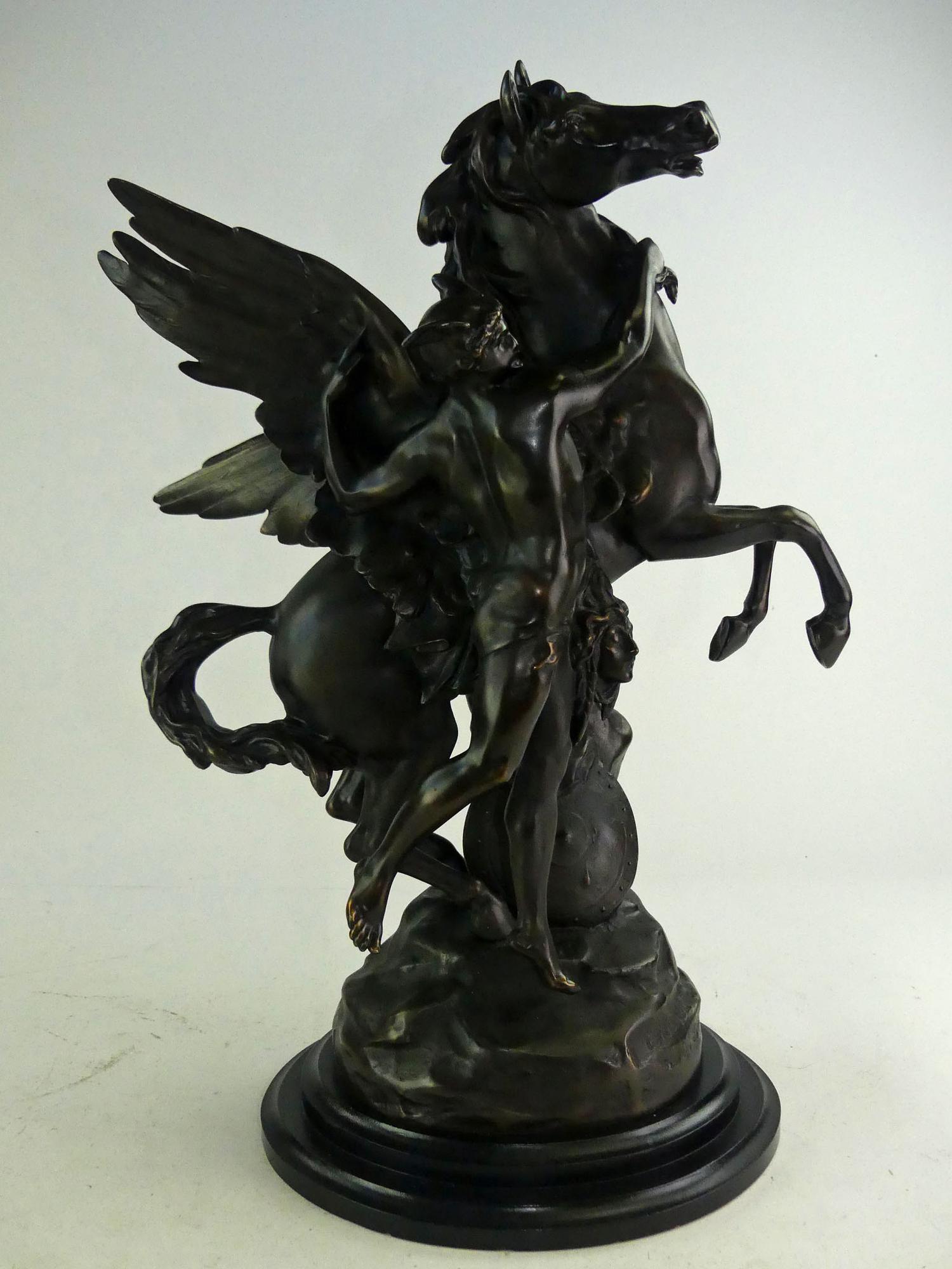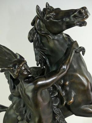 after emile louis picault, bronze finish sculpture of mercury & pegasus, salon des beaux arts