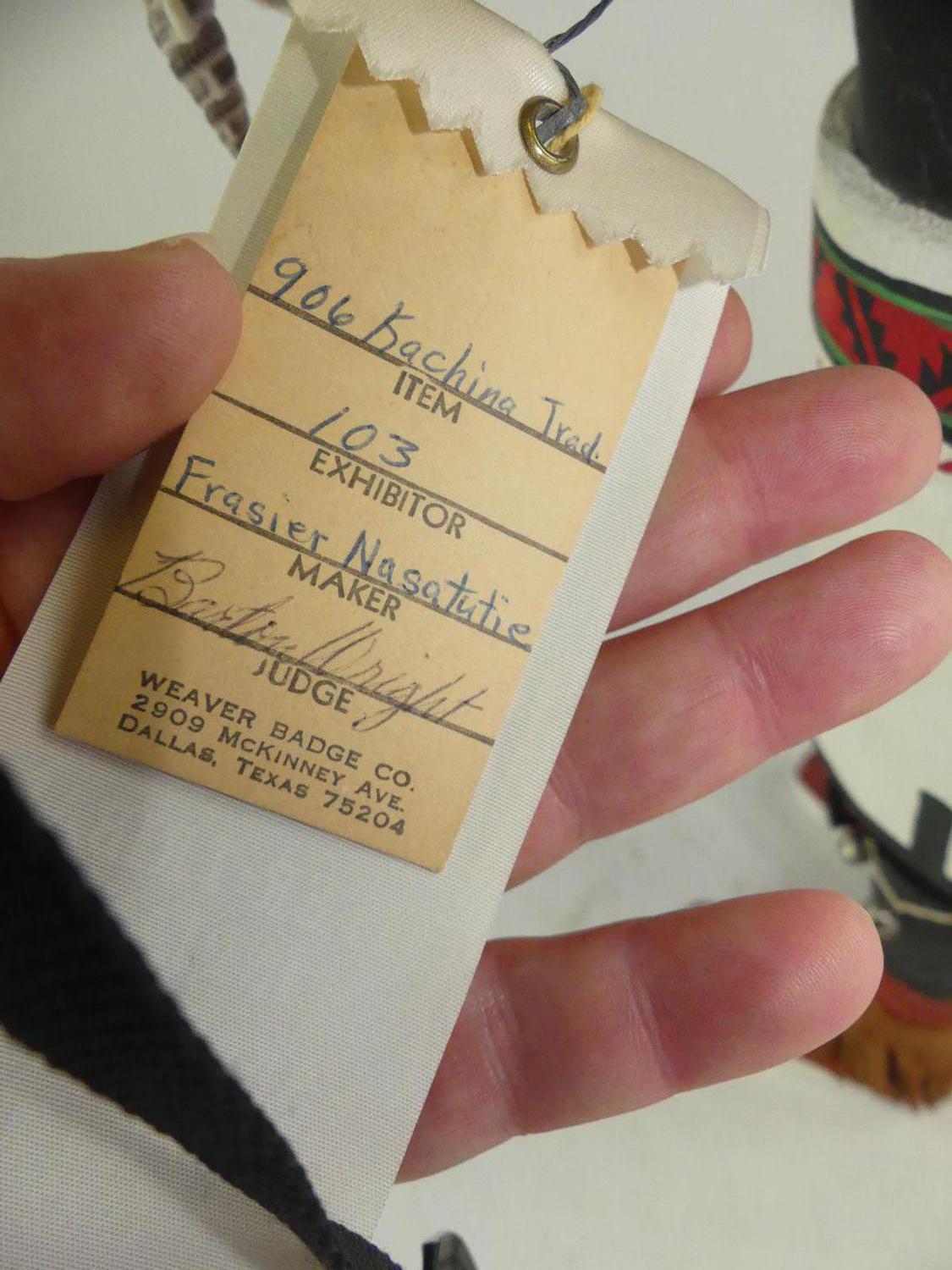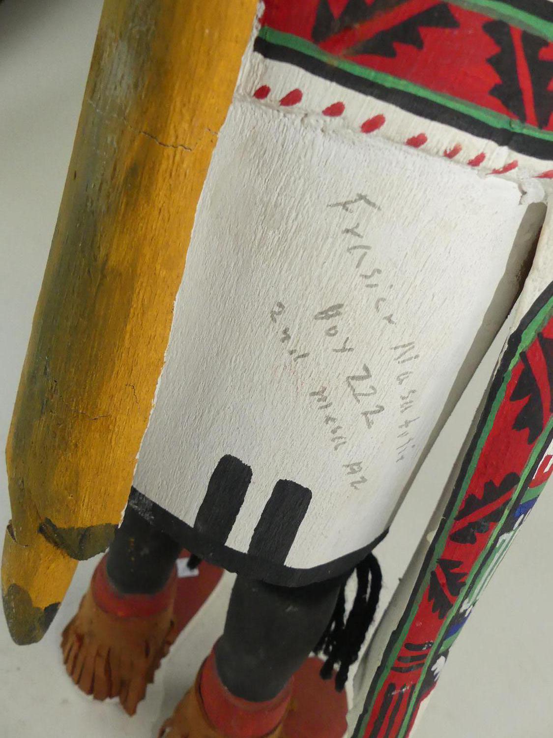 carved and painted kachina figure by frasier nasatutie, ht. 28"