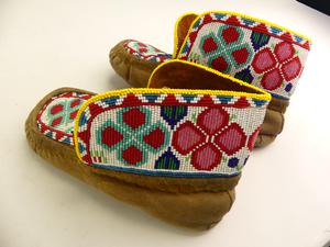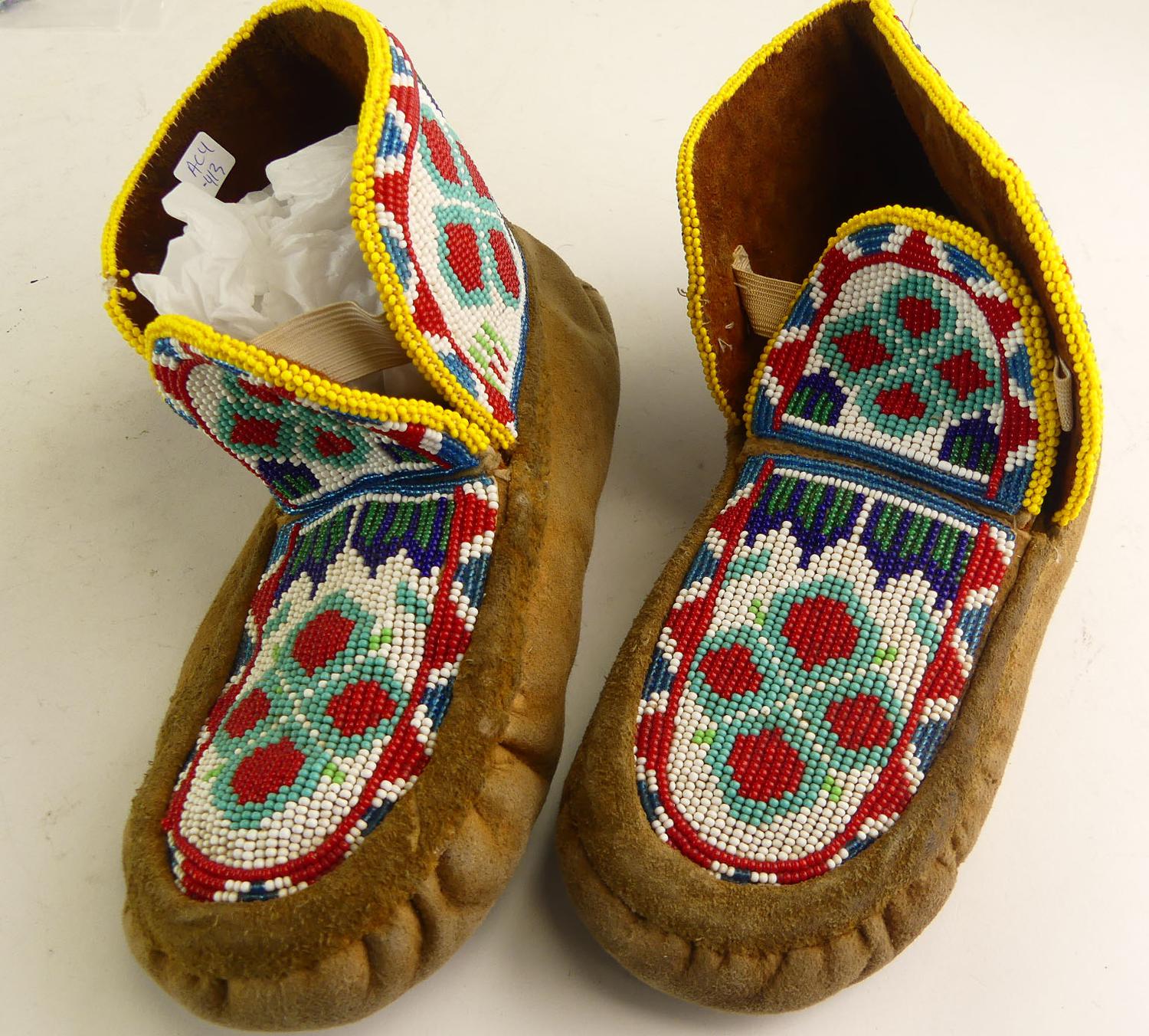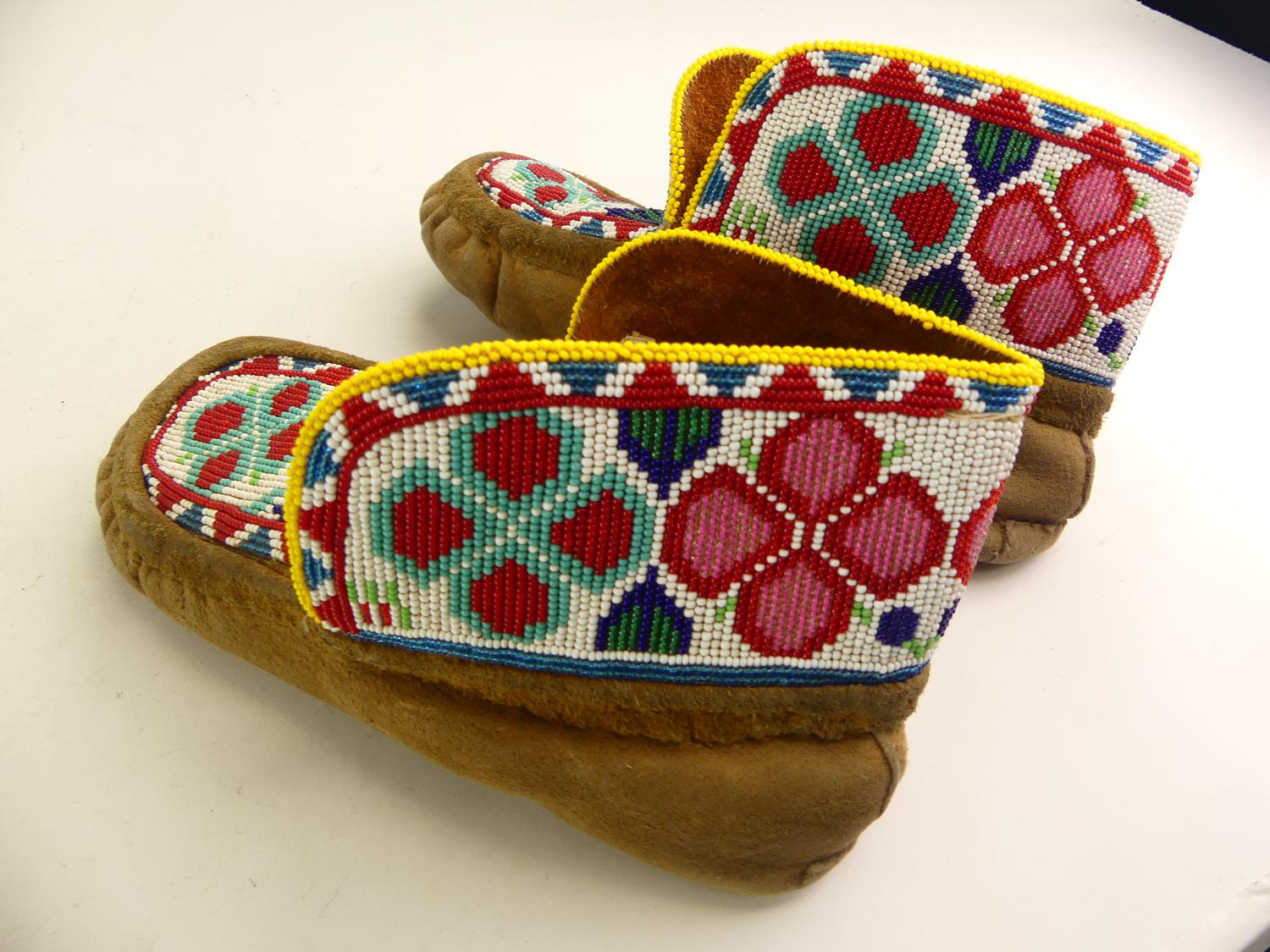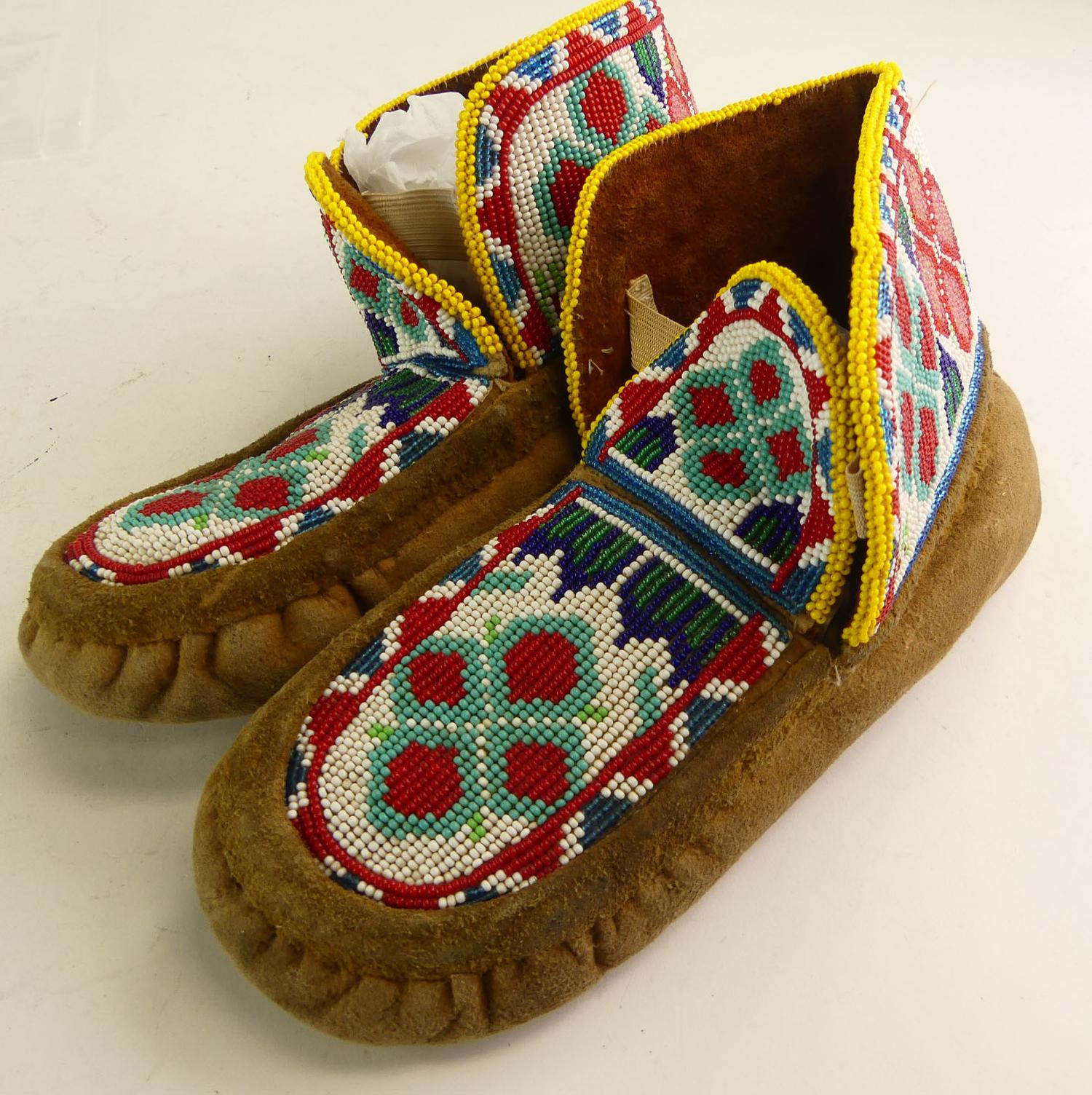 pair of cree beaded moccasins, purchased in alberta circa 1960