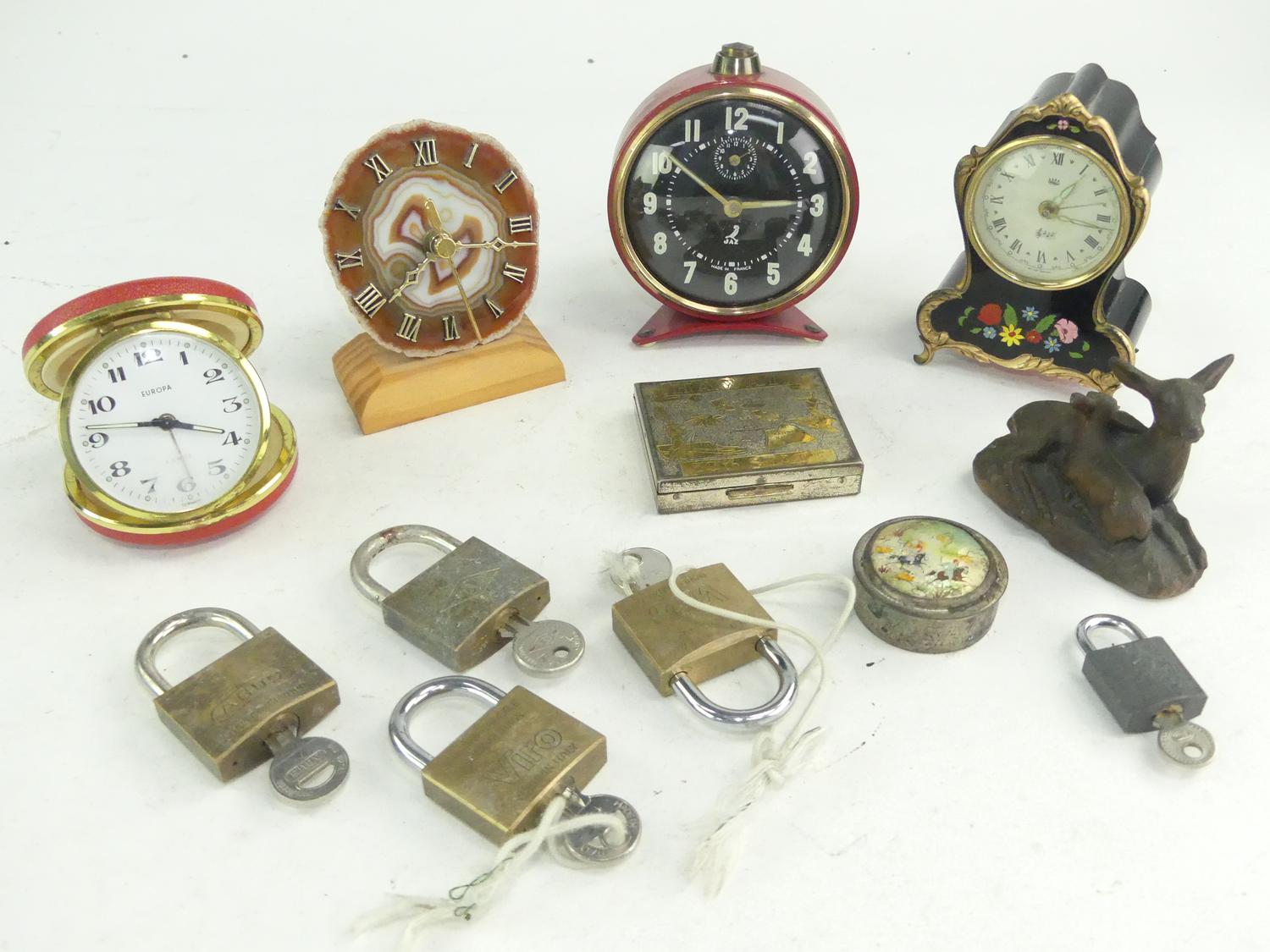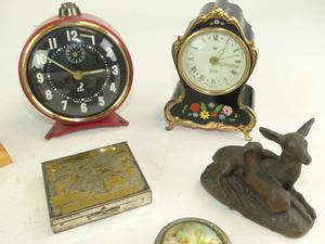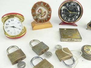 lot of clocks and desk items
