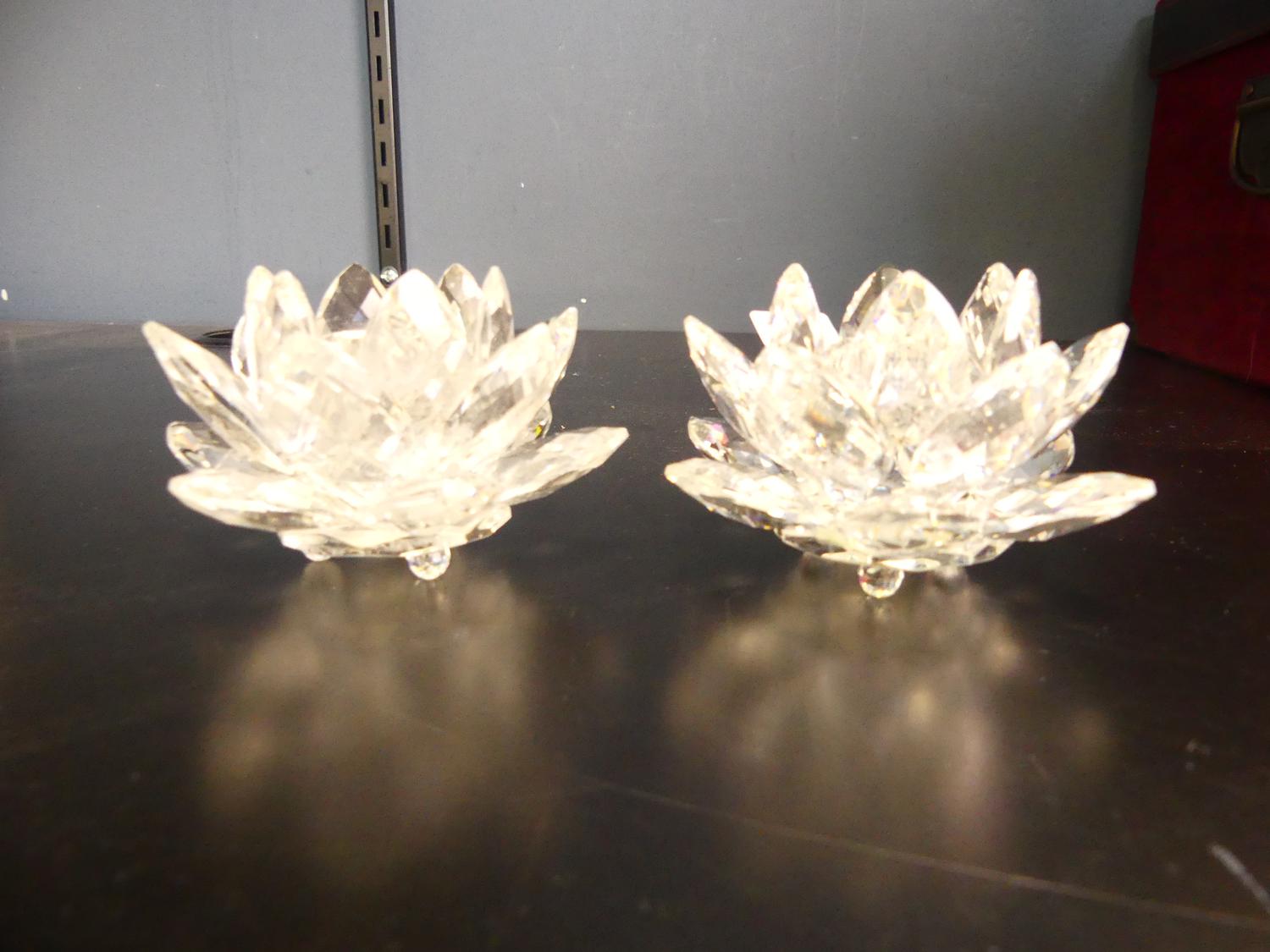 pair of swarovsky "water lily" candle holders, 2 1/2" x 4"