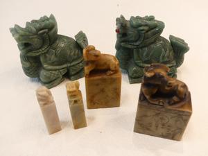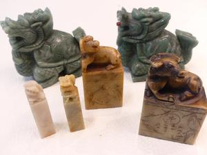 pair of asian foo dogs with a group of chinese harstone seals
