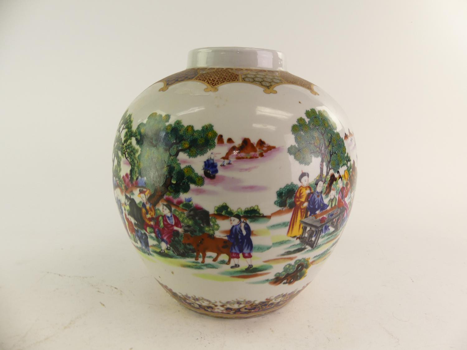 chinese landscape vase, ht. 11"