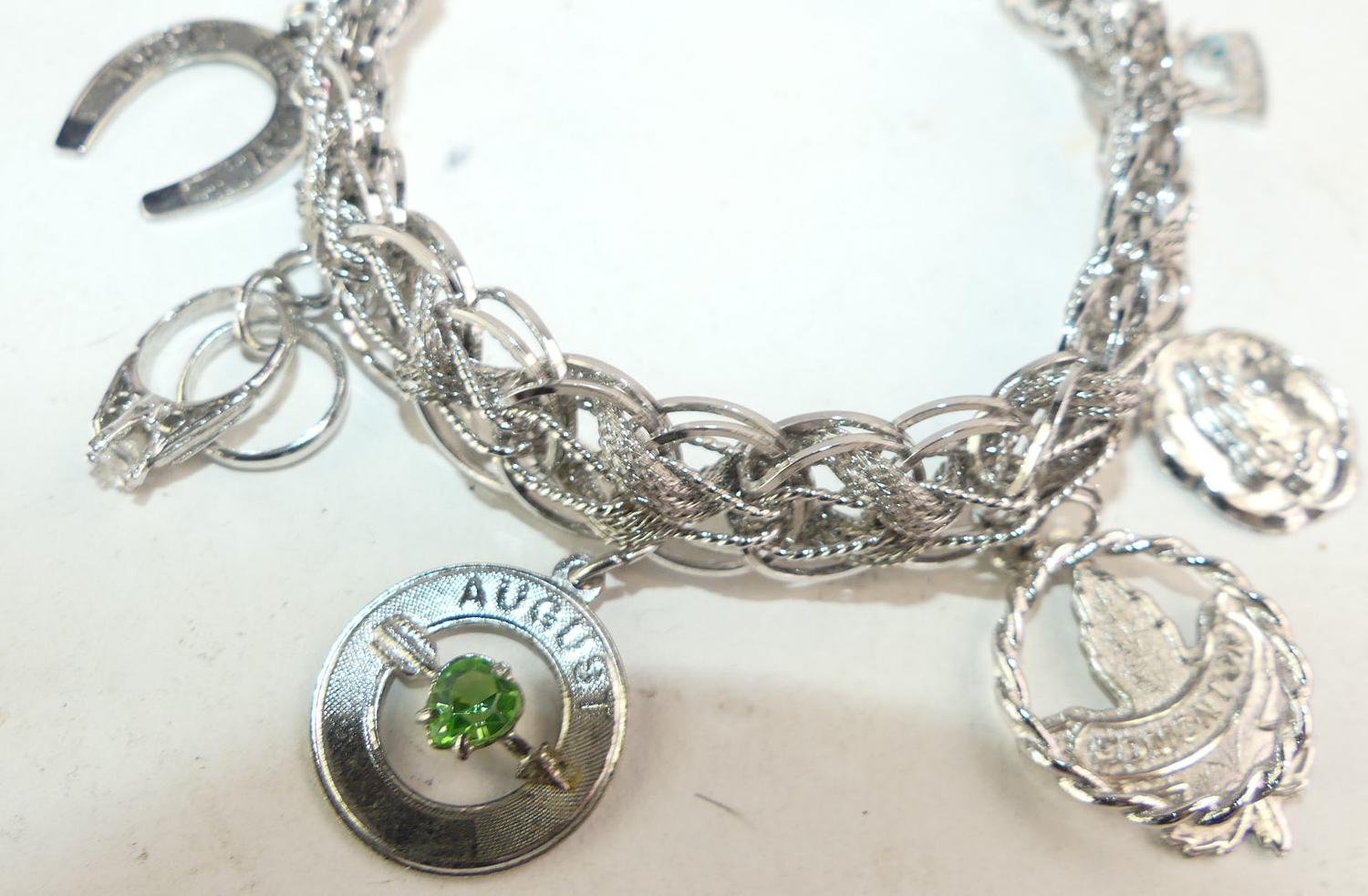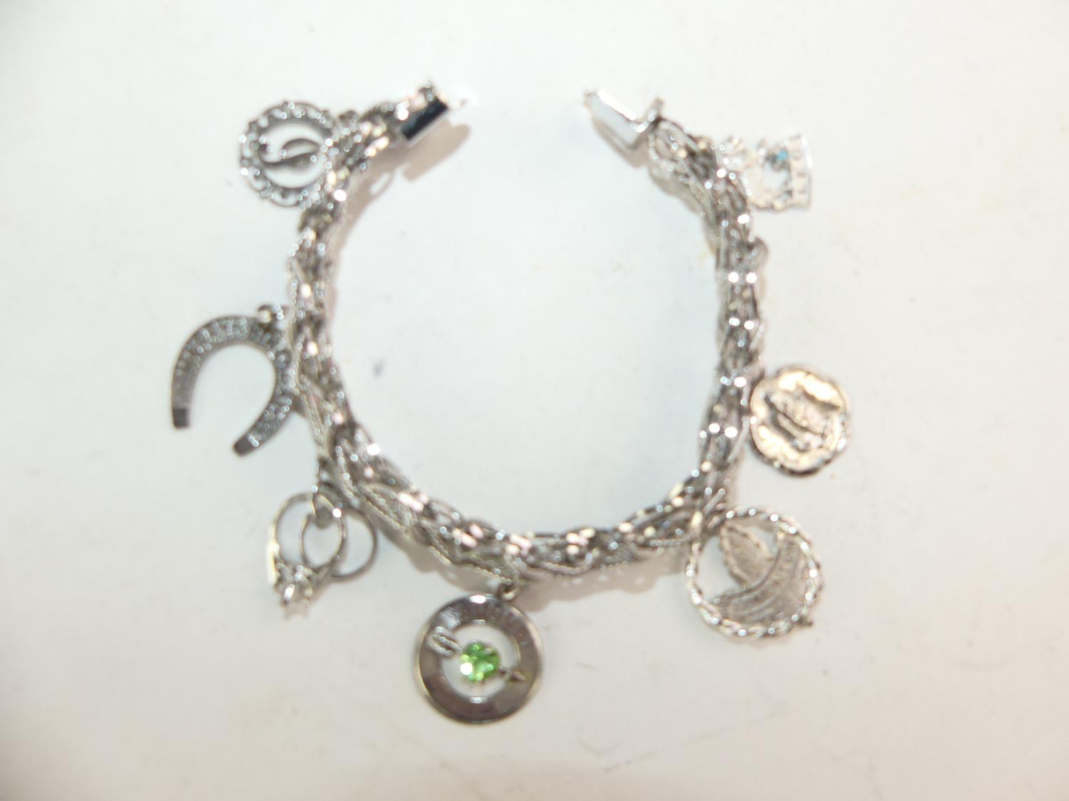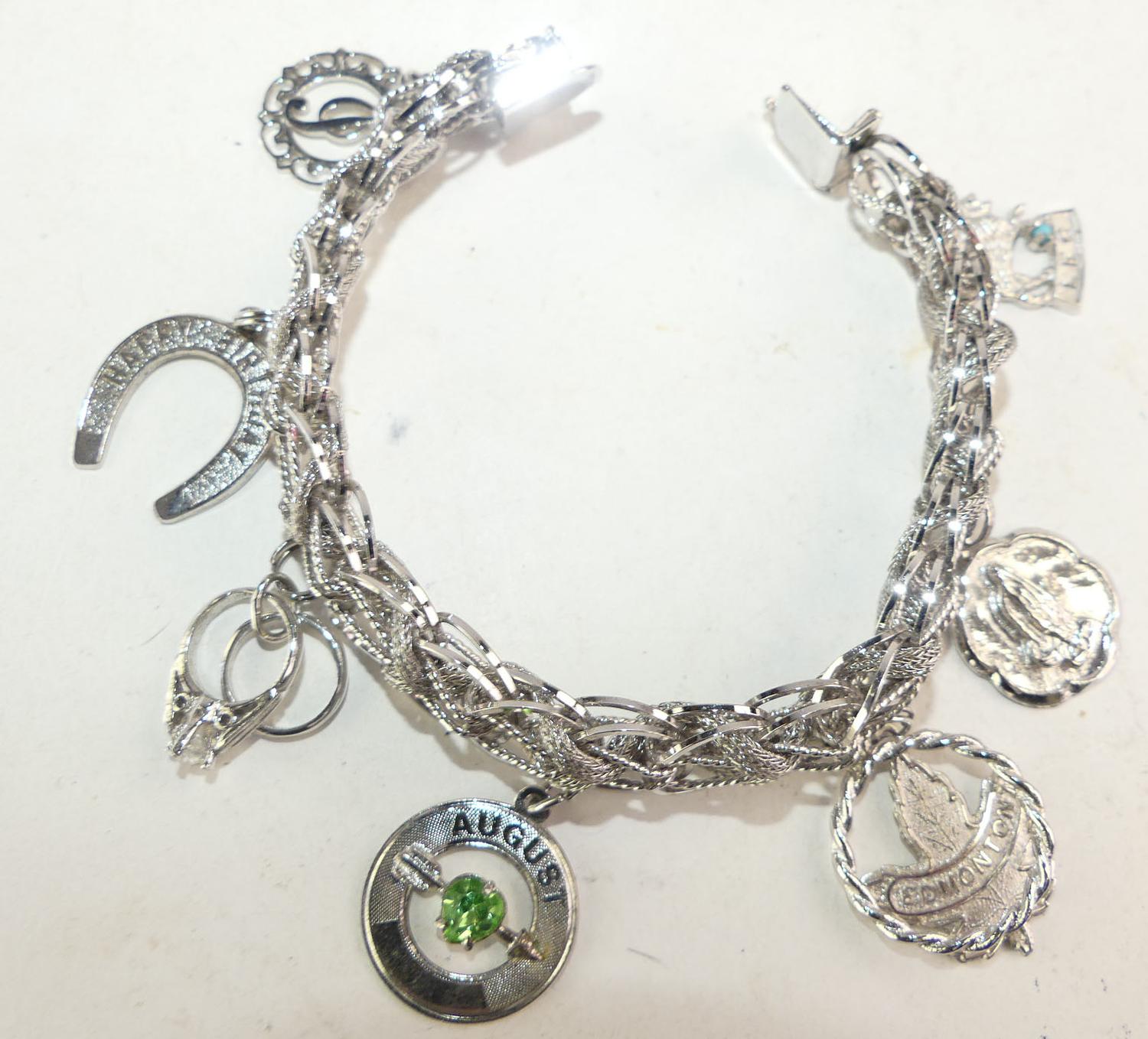 sterling silver charm bracelet, weighing 34.8 grams, 7 1/2"