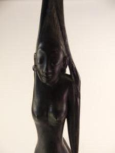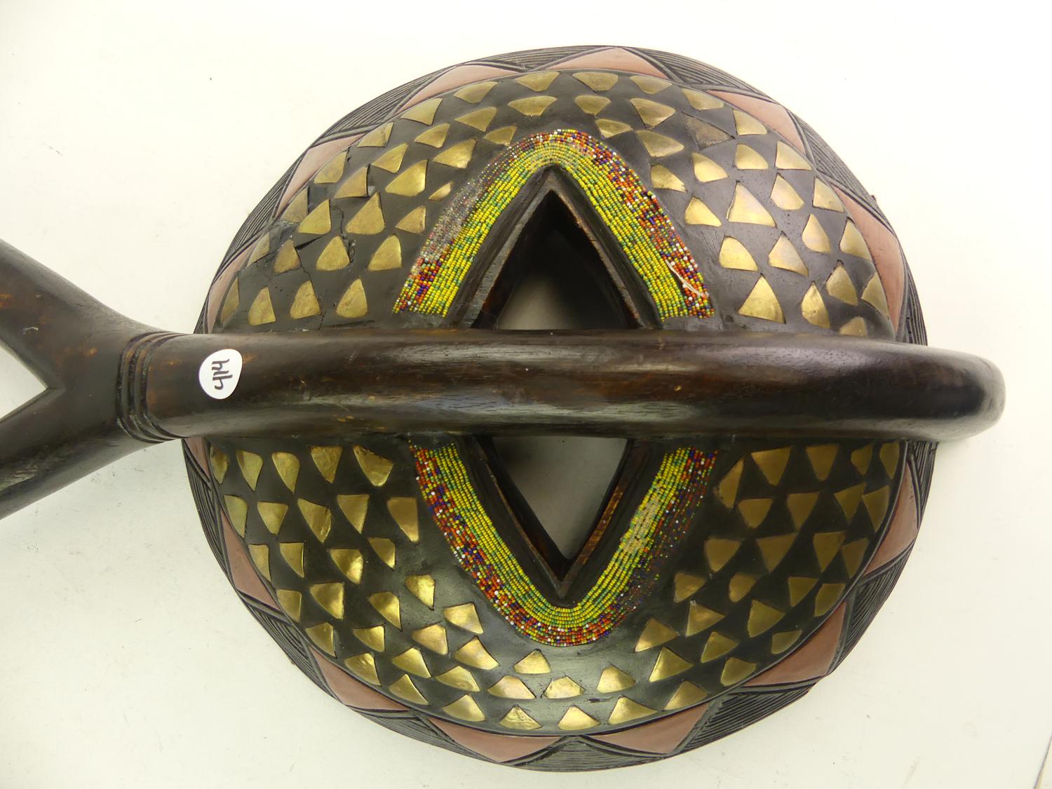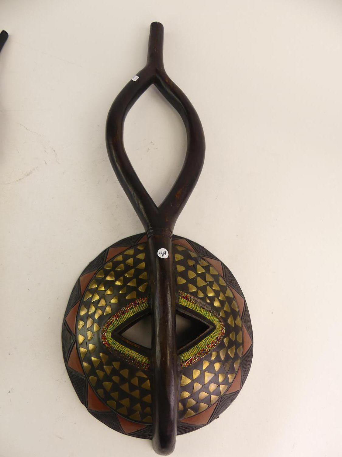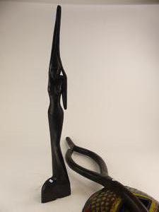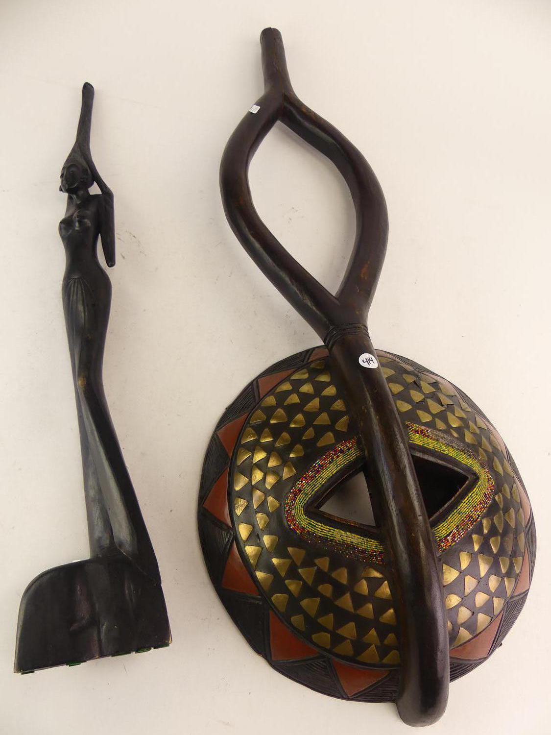 ghana carved and inlaid mask together with figure, ht. 34"