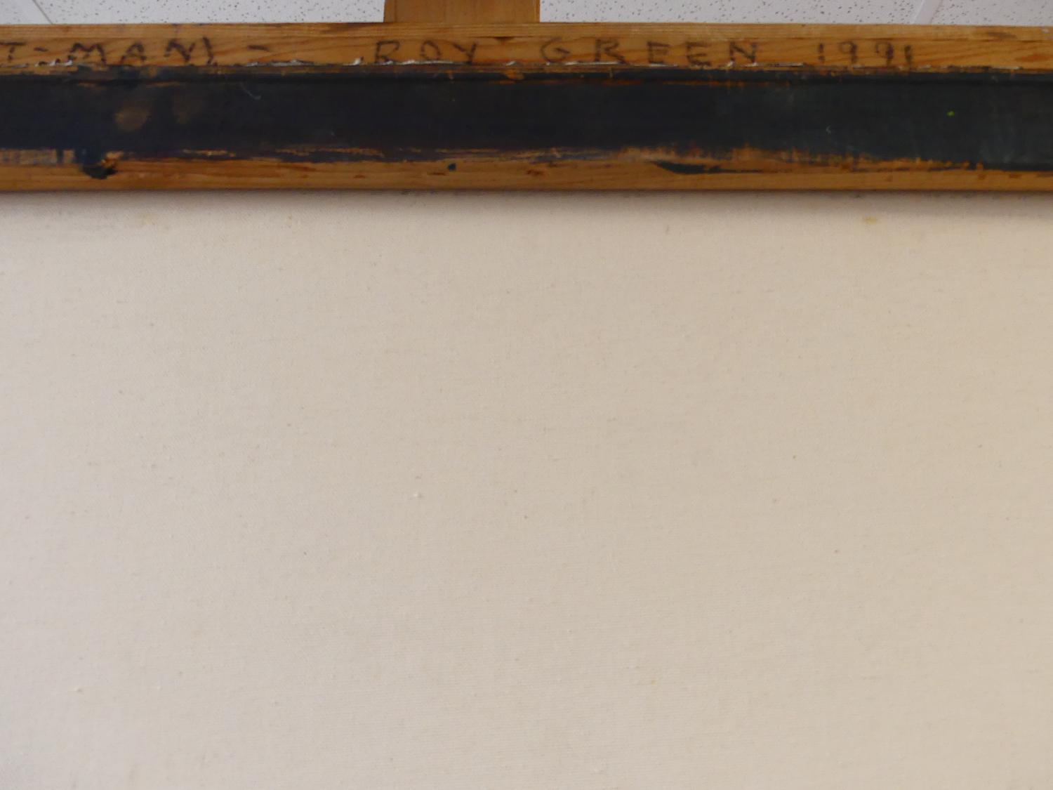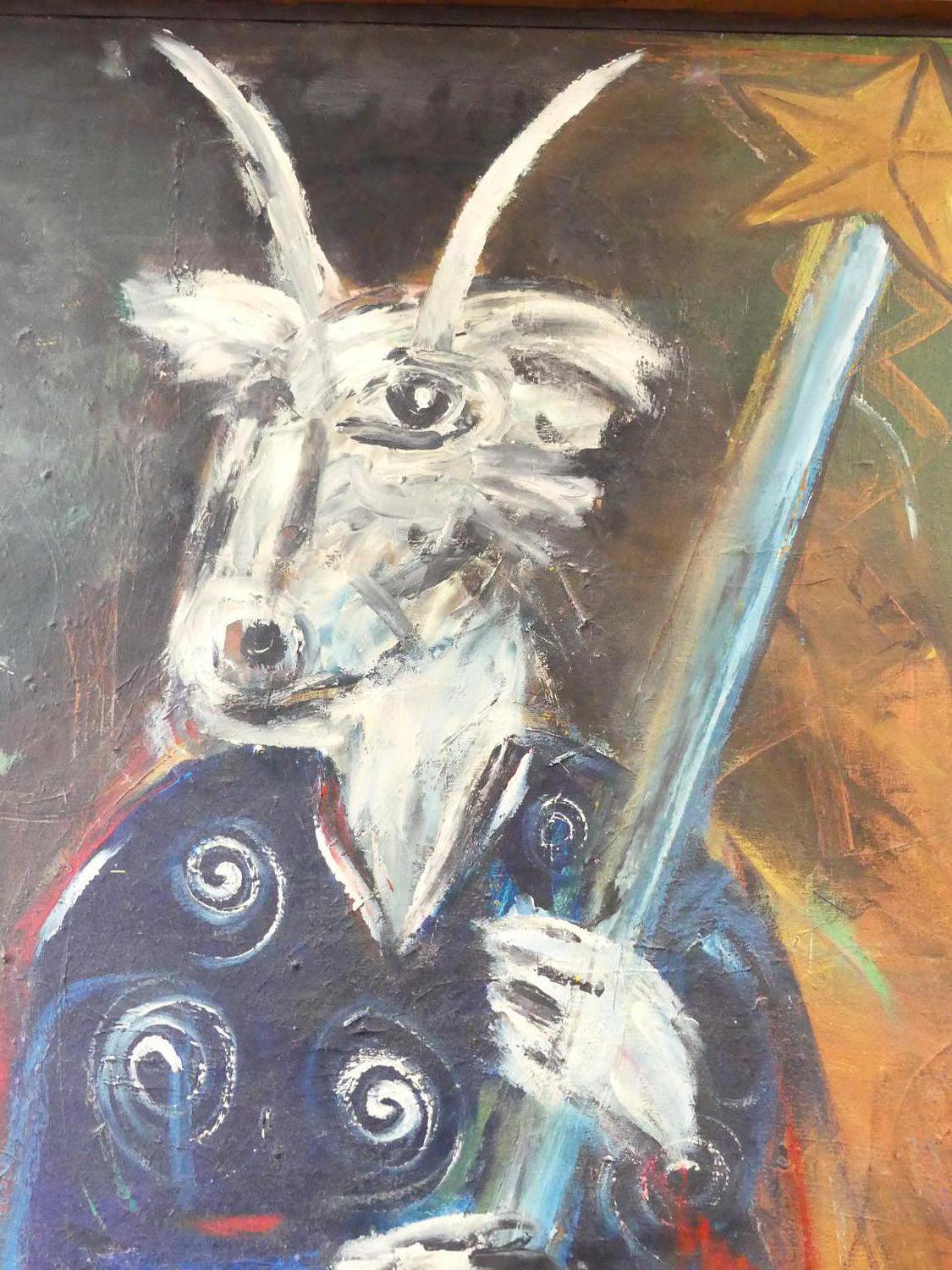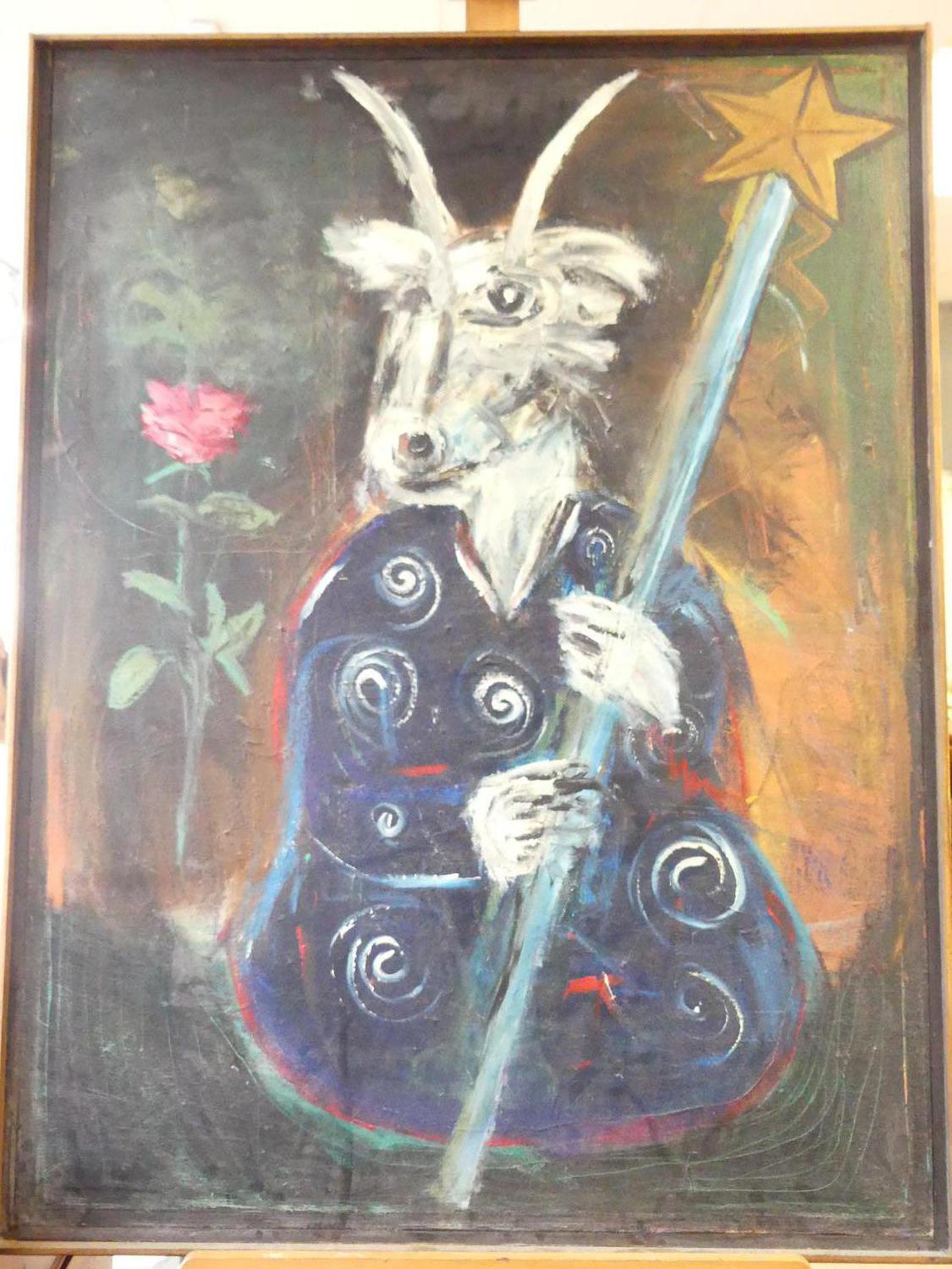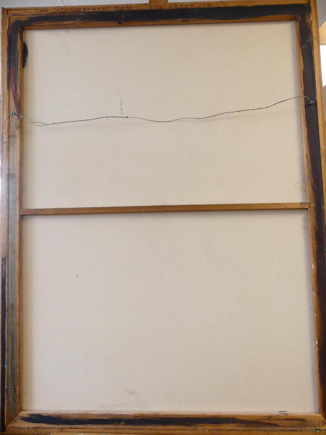 roy green, dated 1991, oil on canvas, 48" x 36", "the capricorn goat man"