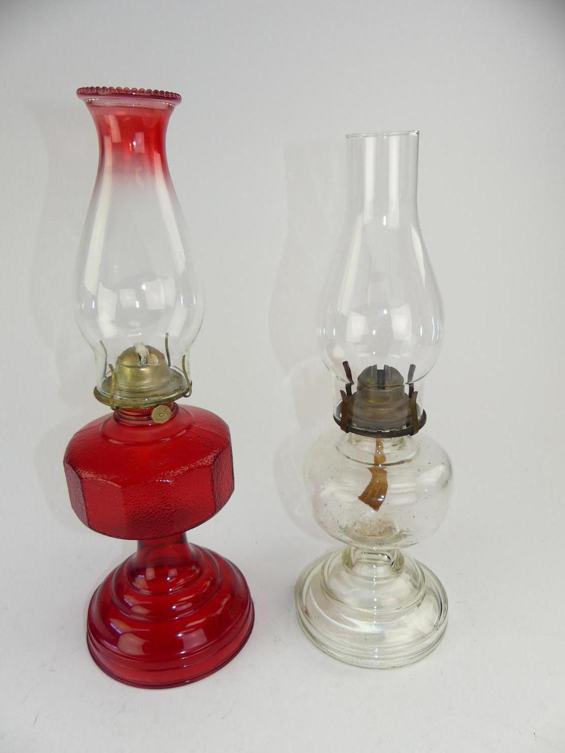 three glass oil lamps