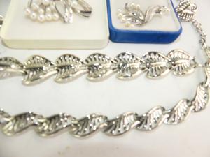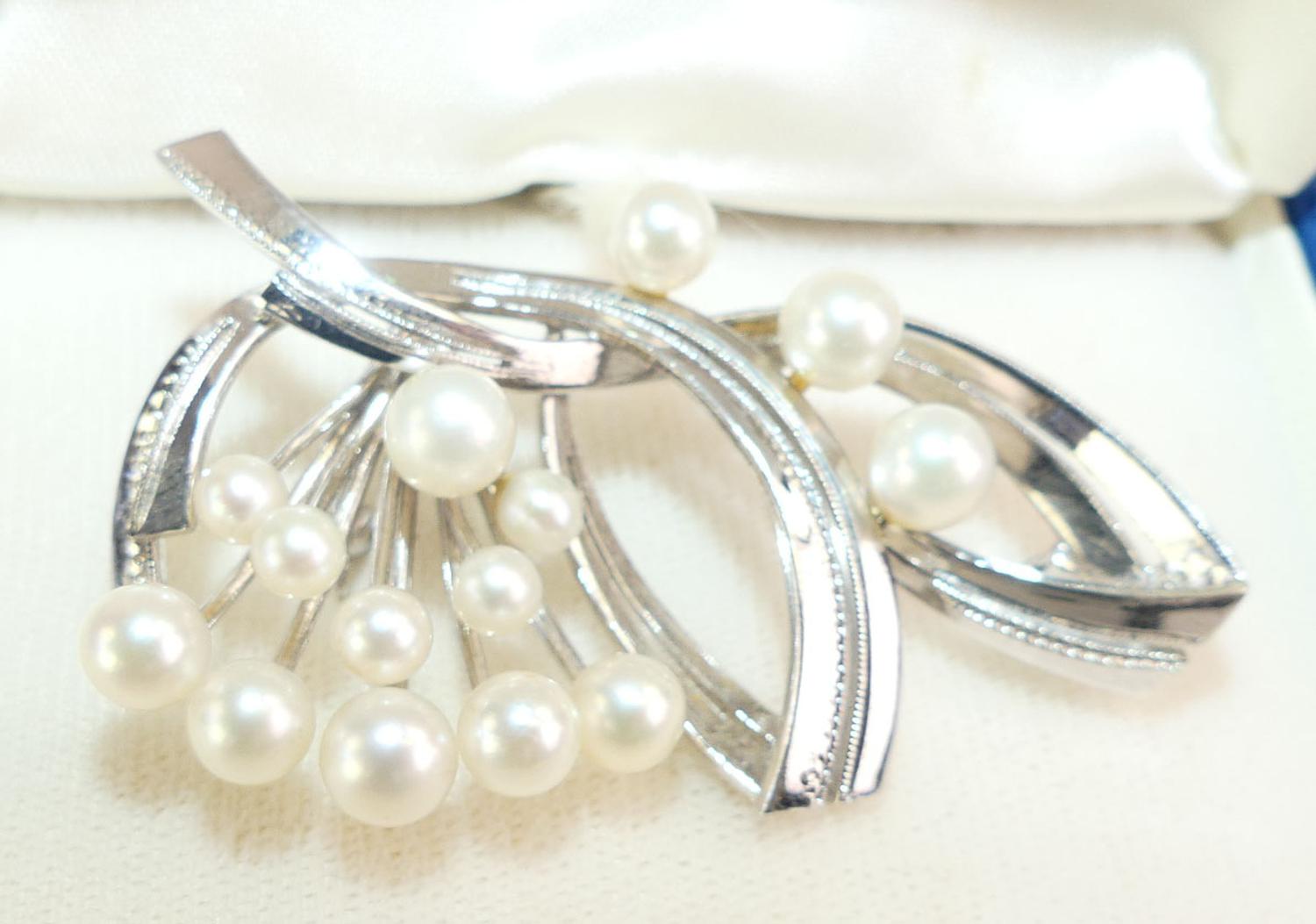 2 sterling silver pearl brooches, with silver plated parure