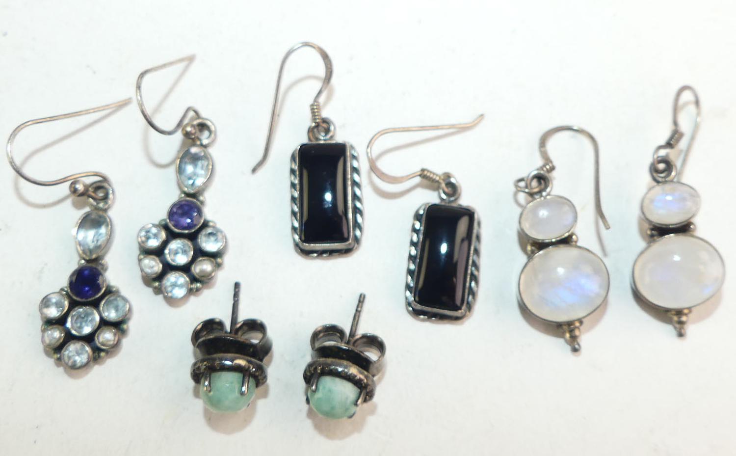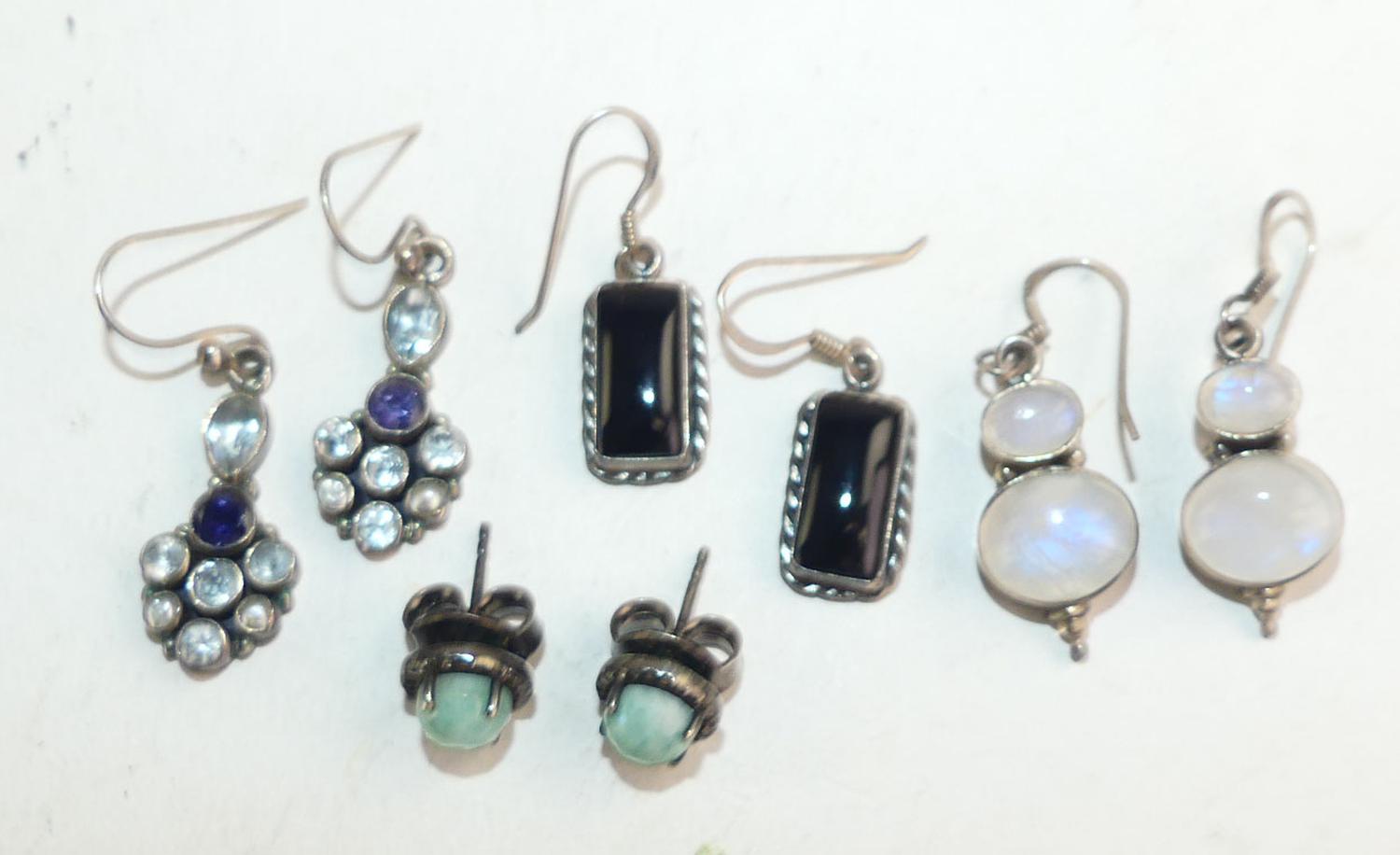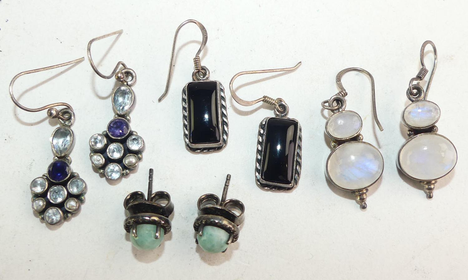 lot of vintage sterling silver gemstone earrings, w/a 17 grams