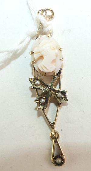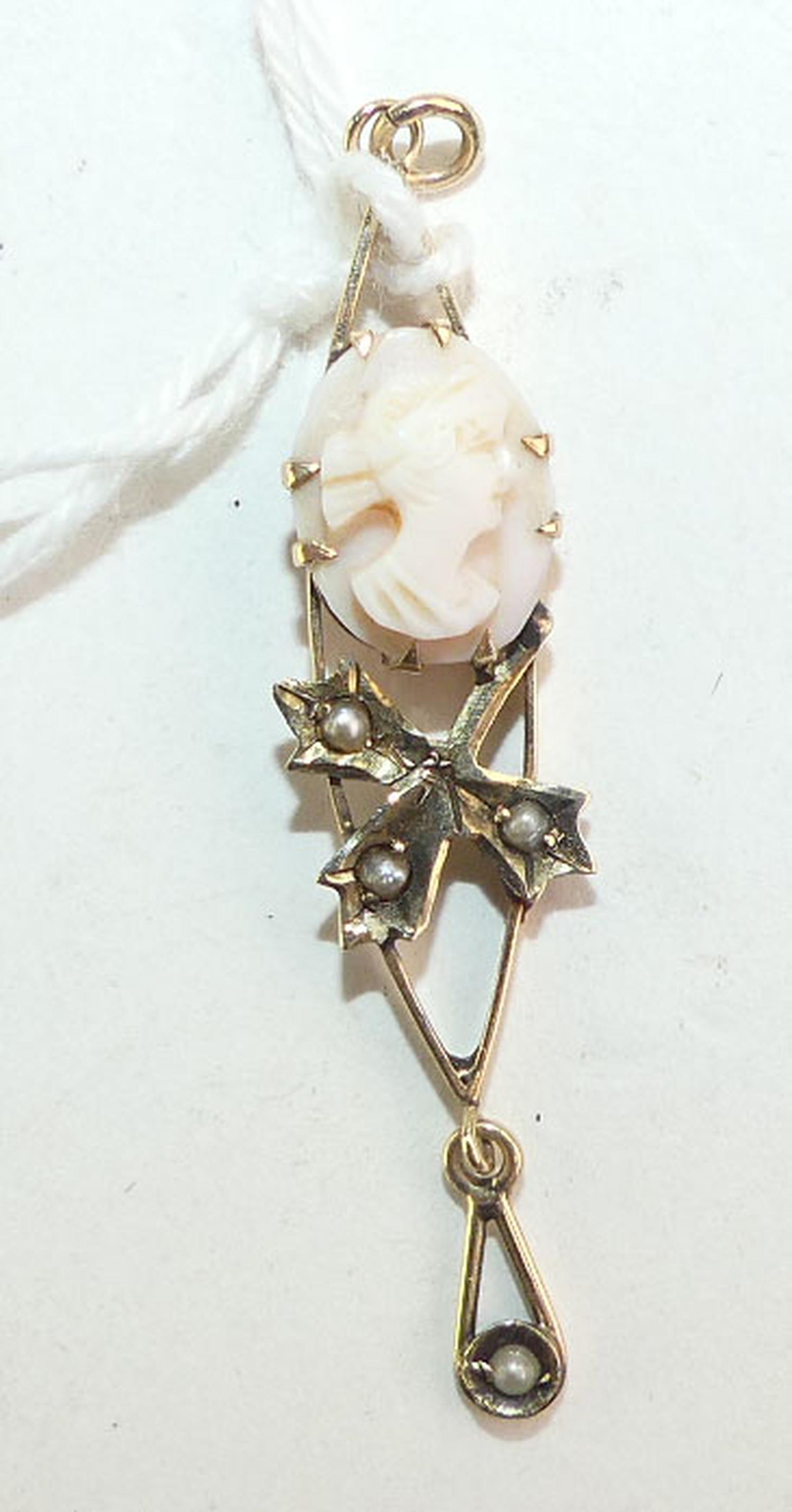 victorian seed pearl cameo pendant, ht 1 1/2"