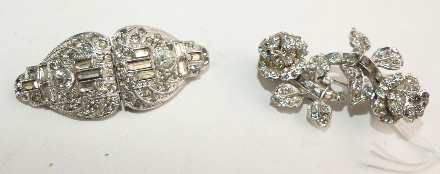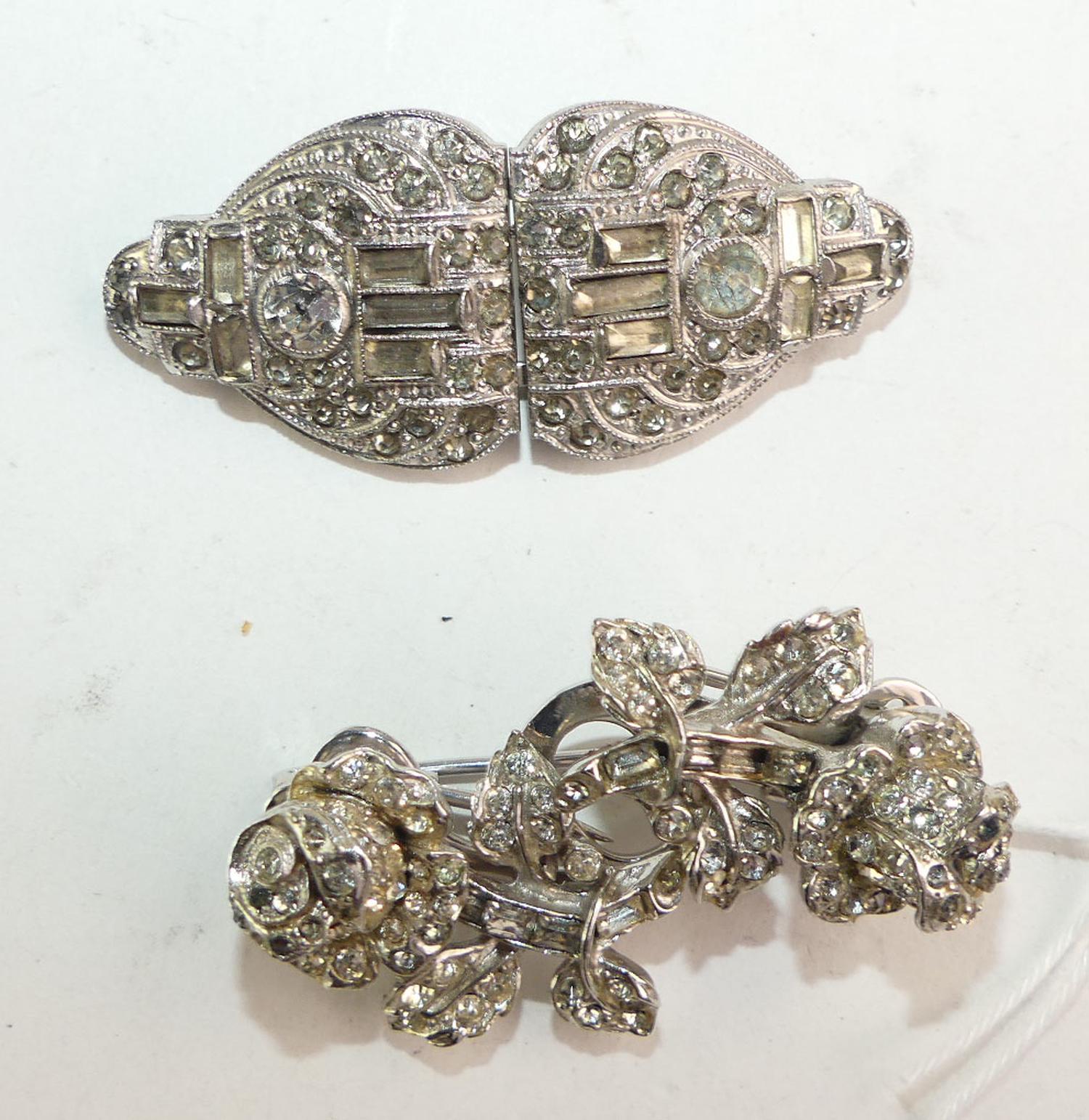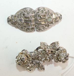 2 art deco rhinestone convertable duette brooch clips