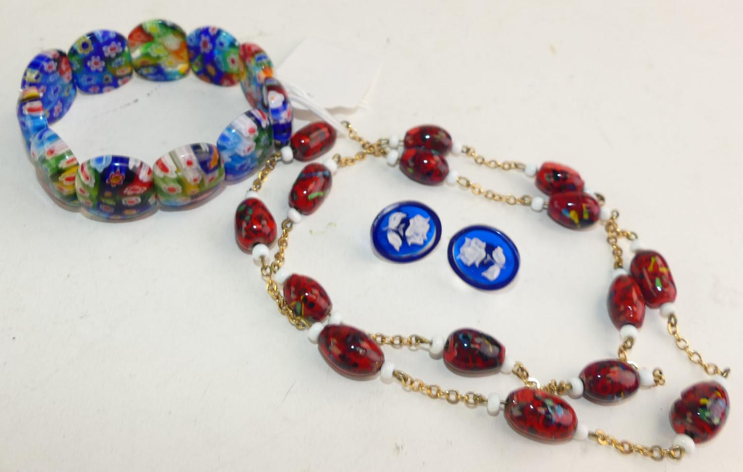 vintage murano glass necklace, bracelet and reverse carved earrings