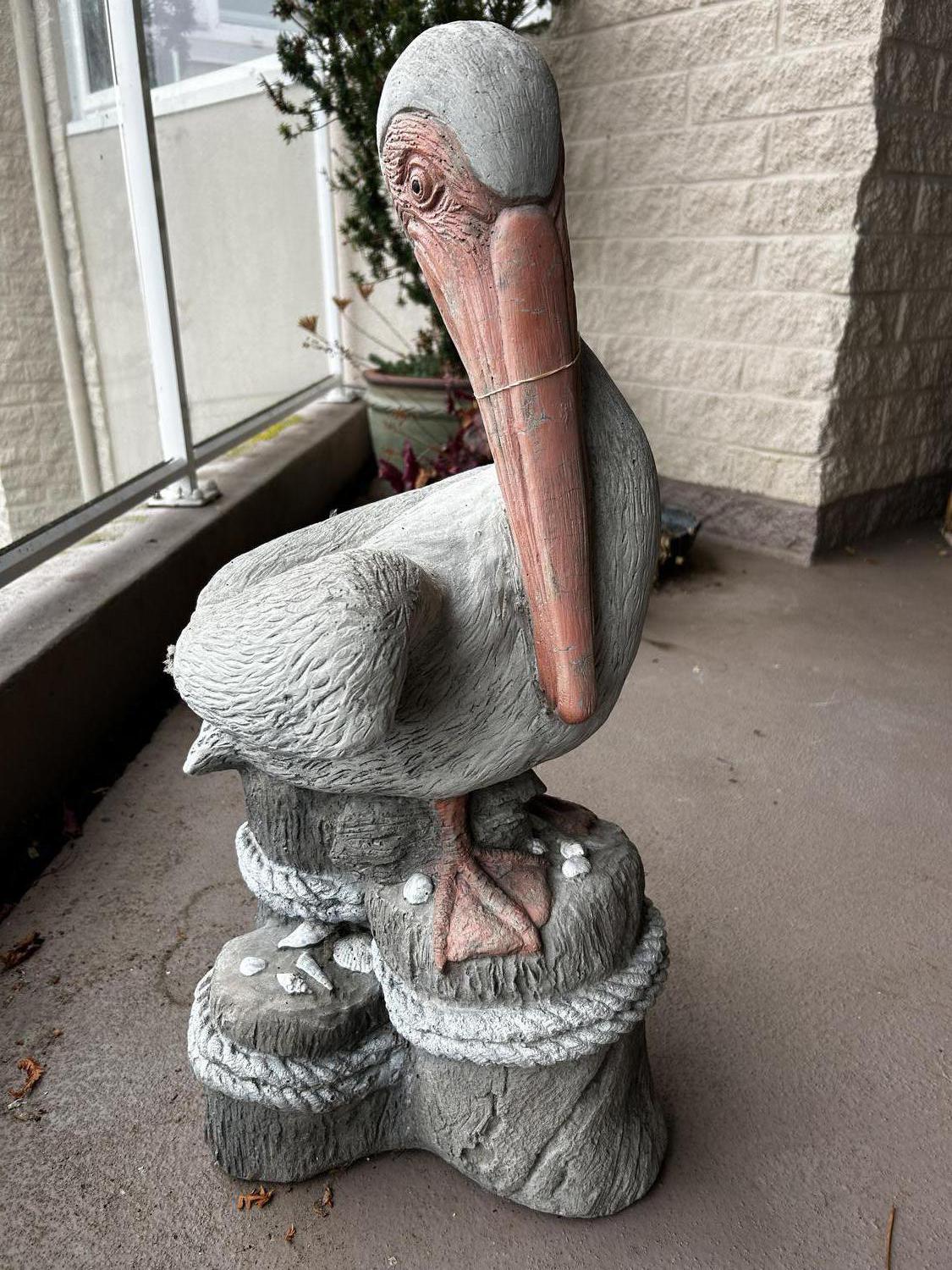 painted concrete pelican garden figure, approx 20"