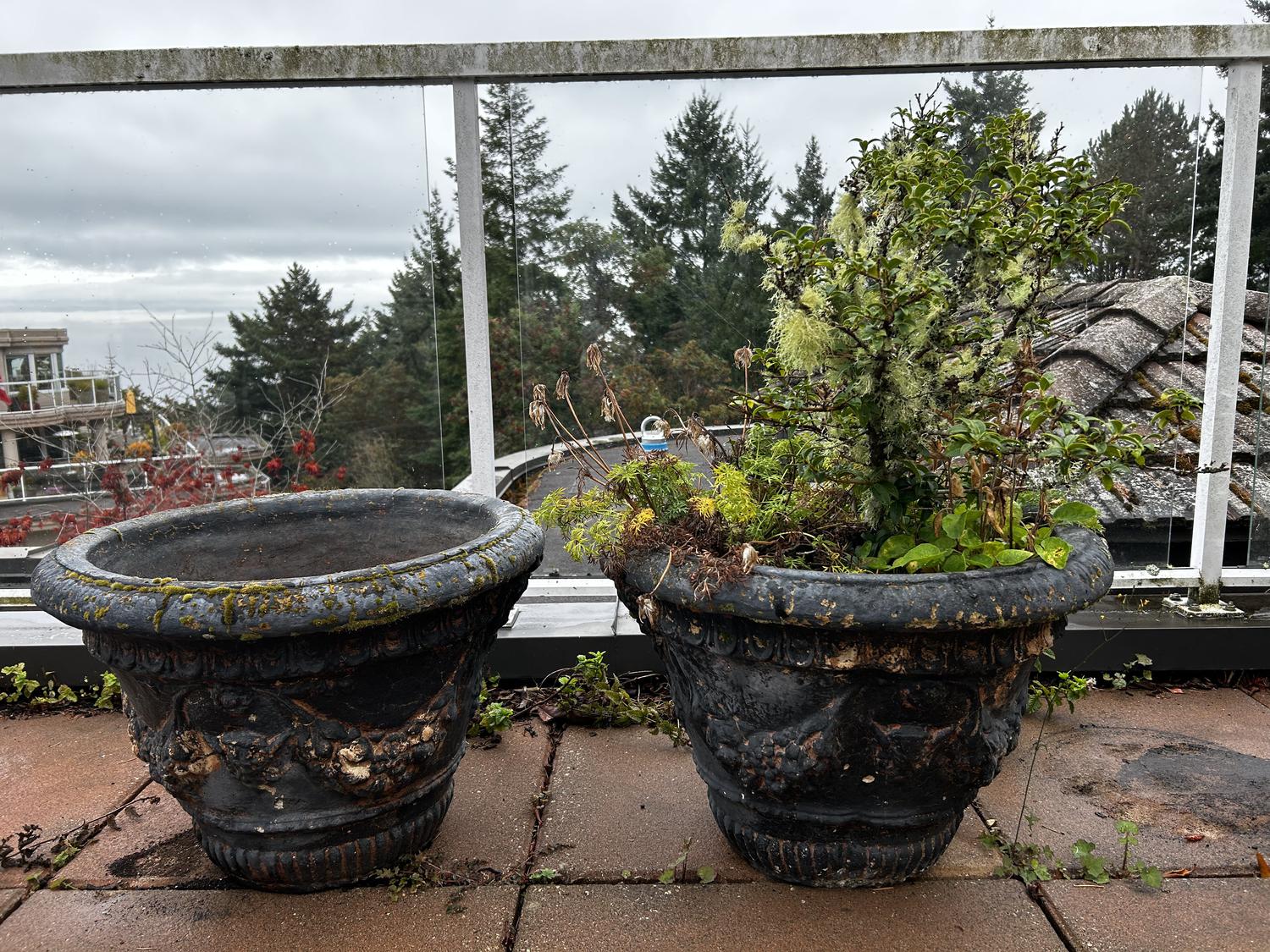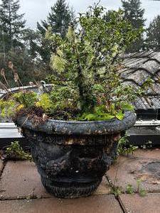 two large planters, approx. ht. 20", one with mossy california huckleberry