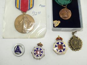 lot of medals and pins
