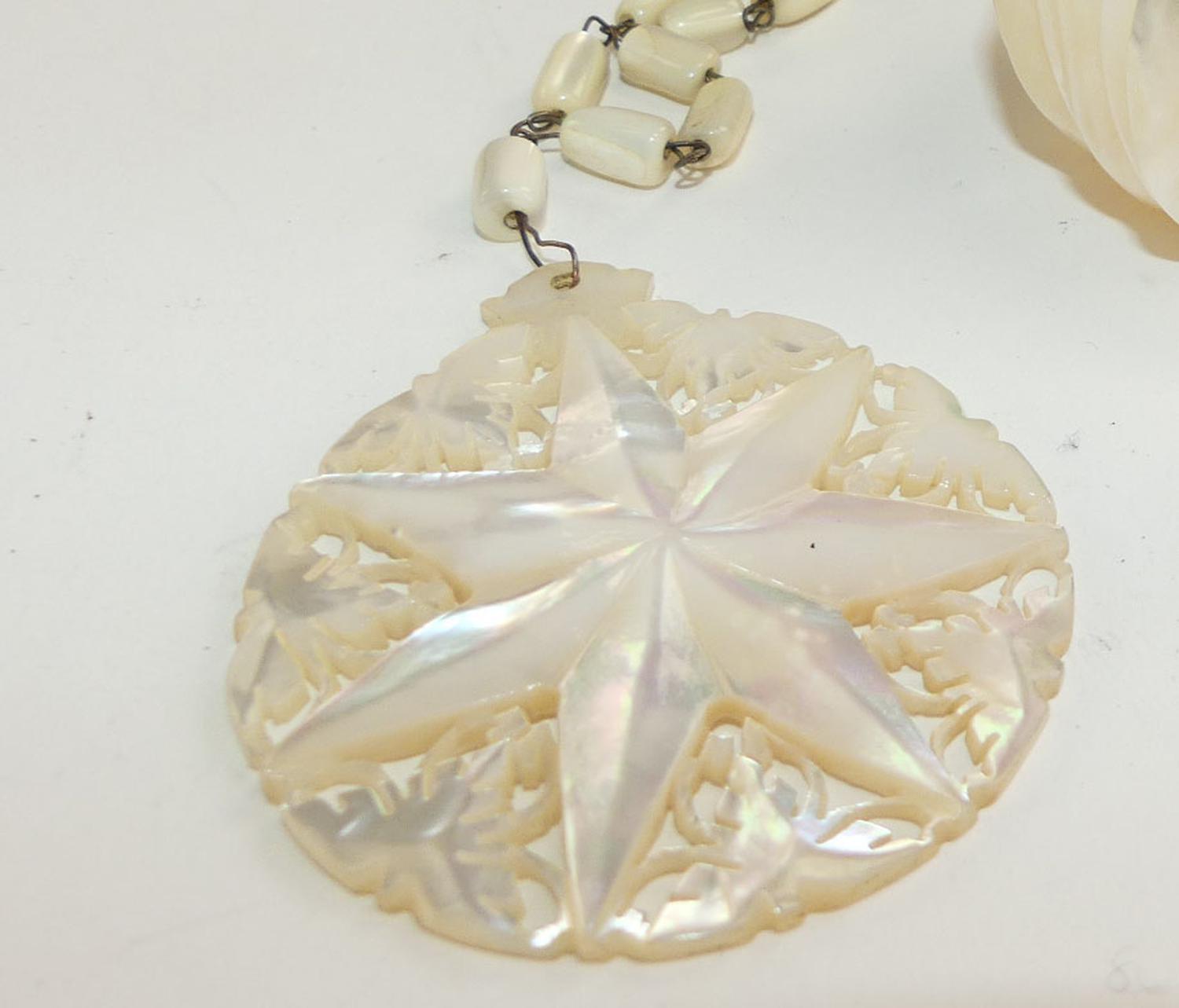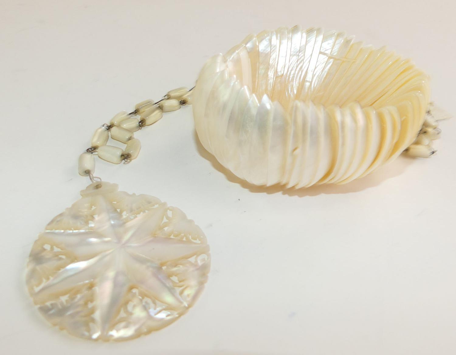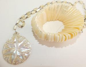 carved mother of pearl bracelet and pendant necklace