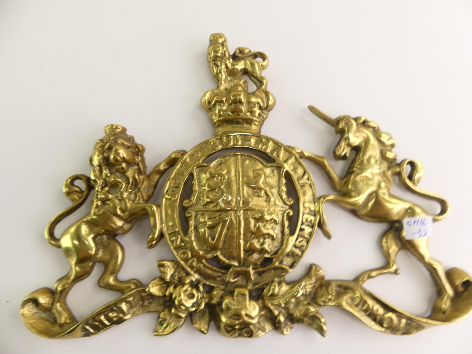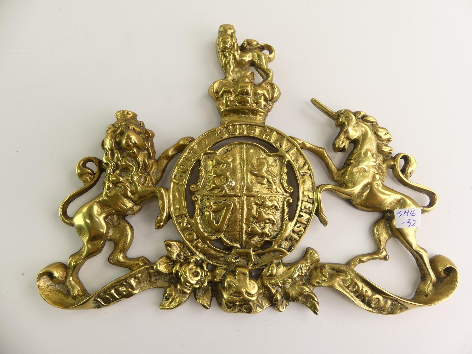 brass royal coat of arms of the united kingdom, 11" x 8"