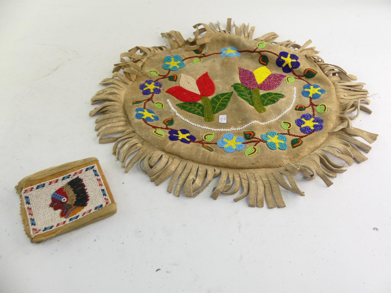 native beaded deer skin pillow cover and wallet