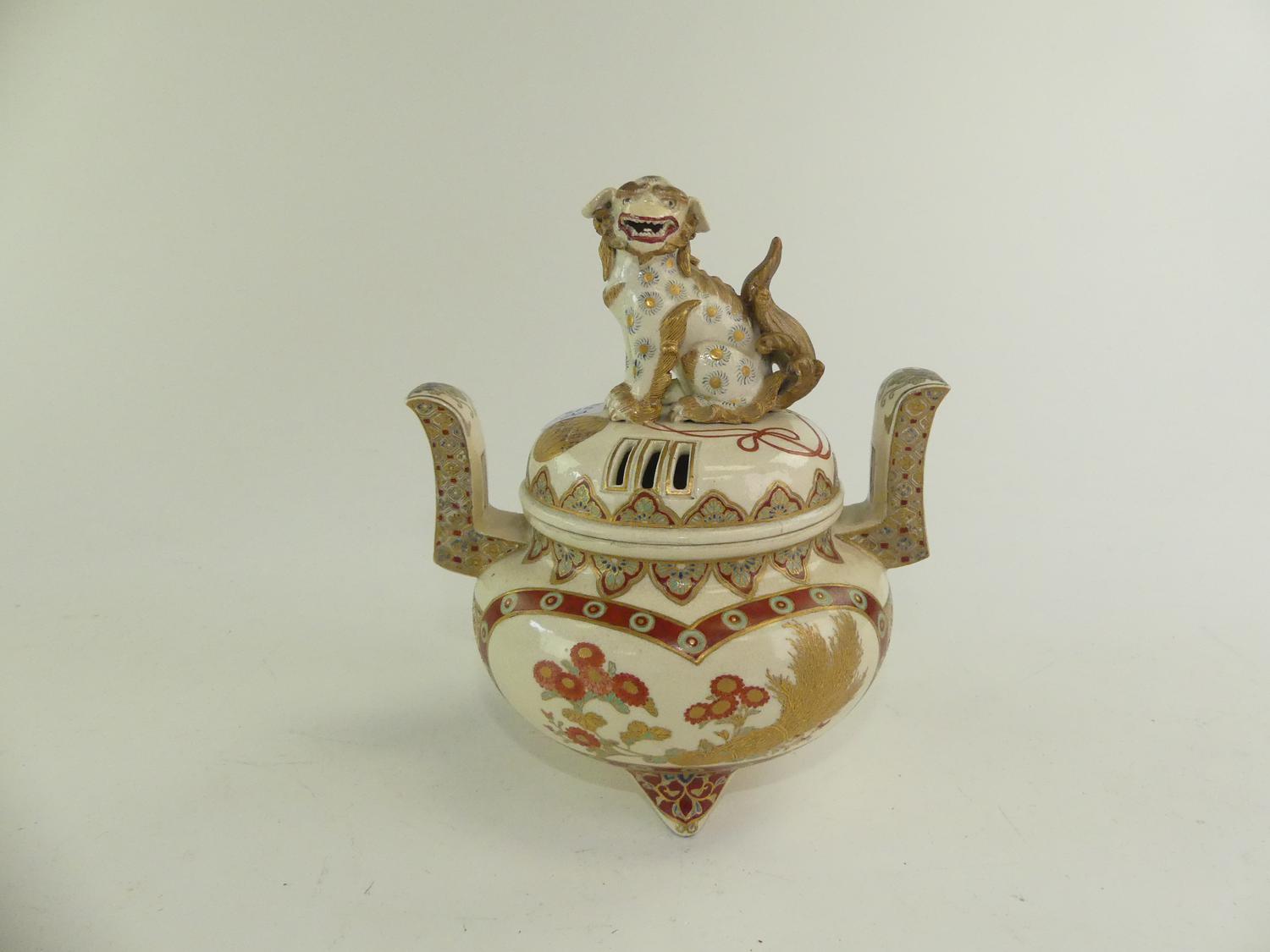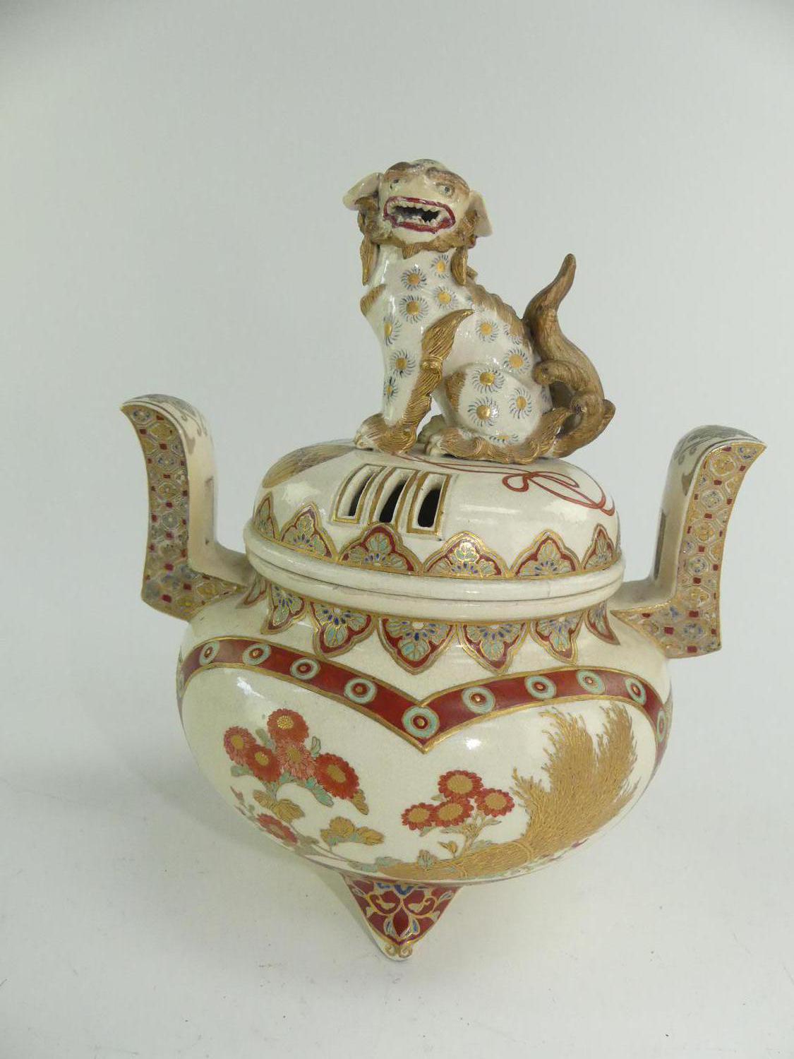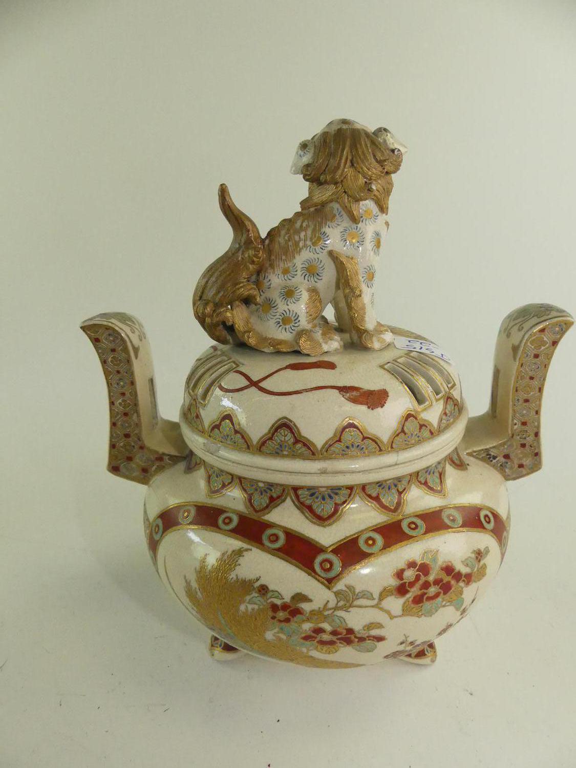 japanese satsuma covered censer, early 20th century, 7" x 6 3/4"