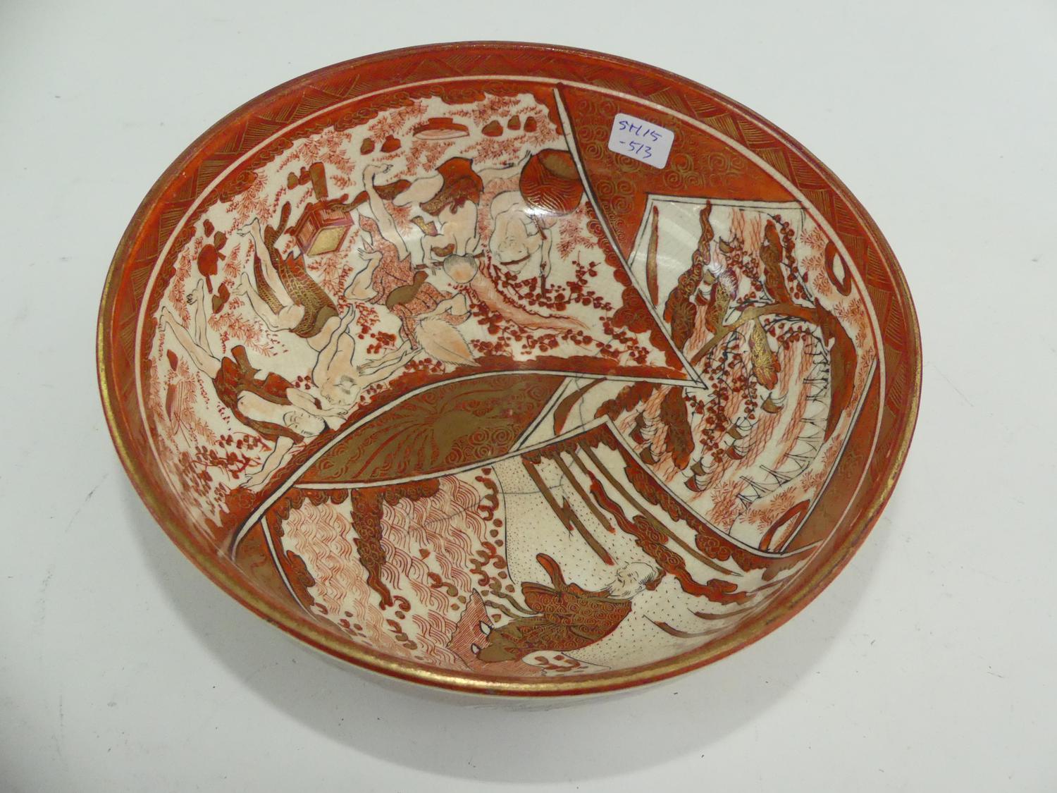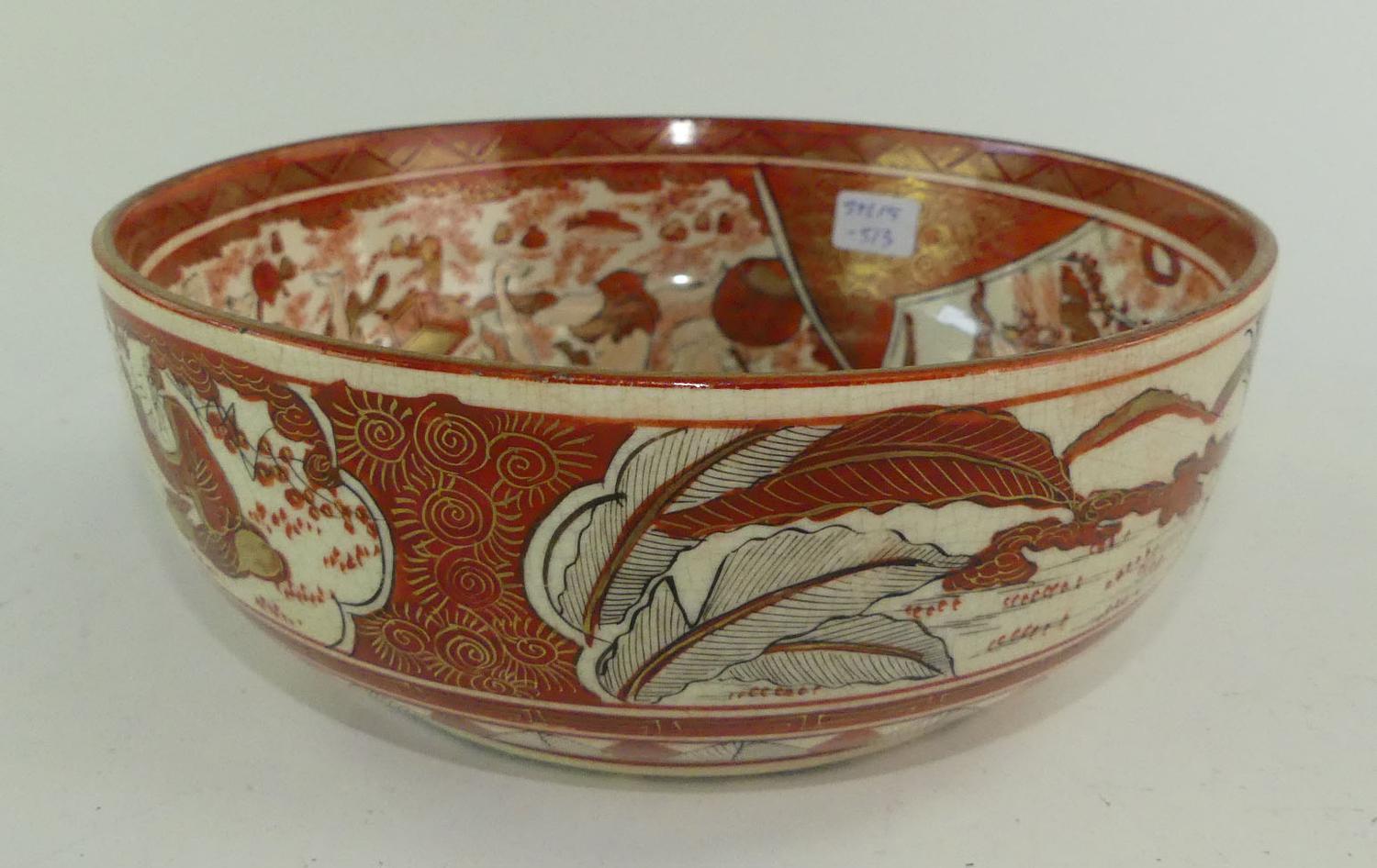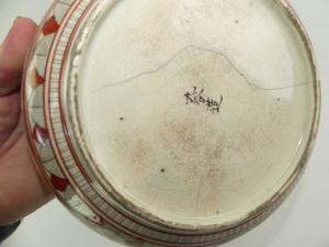 antique japanese kutani ware bowl, 3" x 7 1/4" - crack