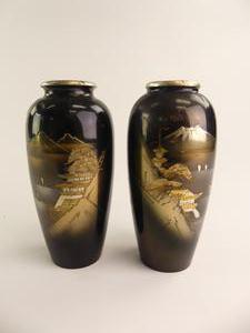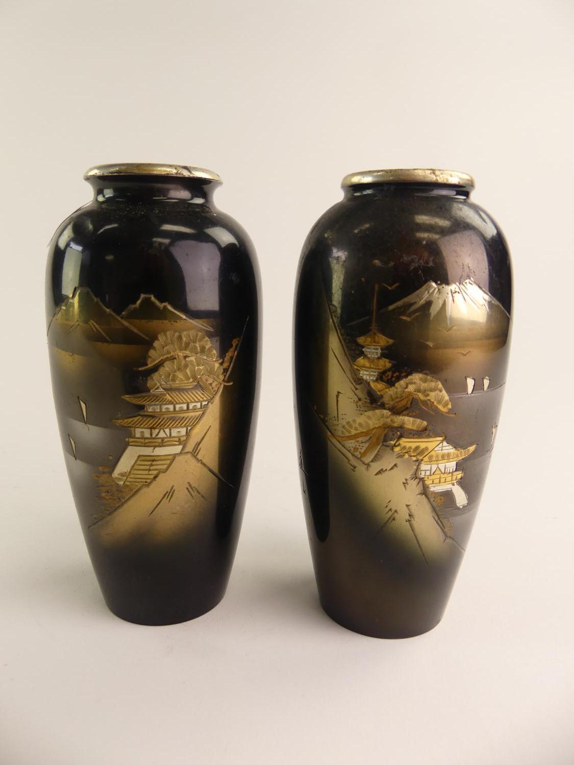 japanese niello vases, ht. 6 1/2"