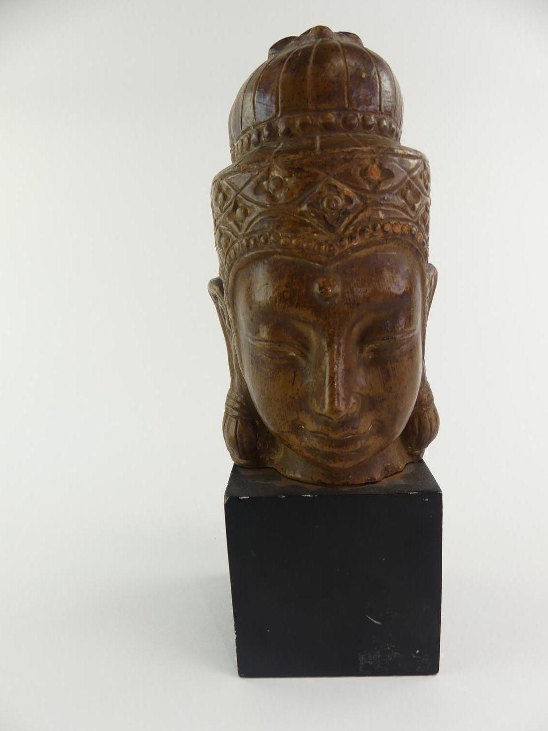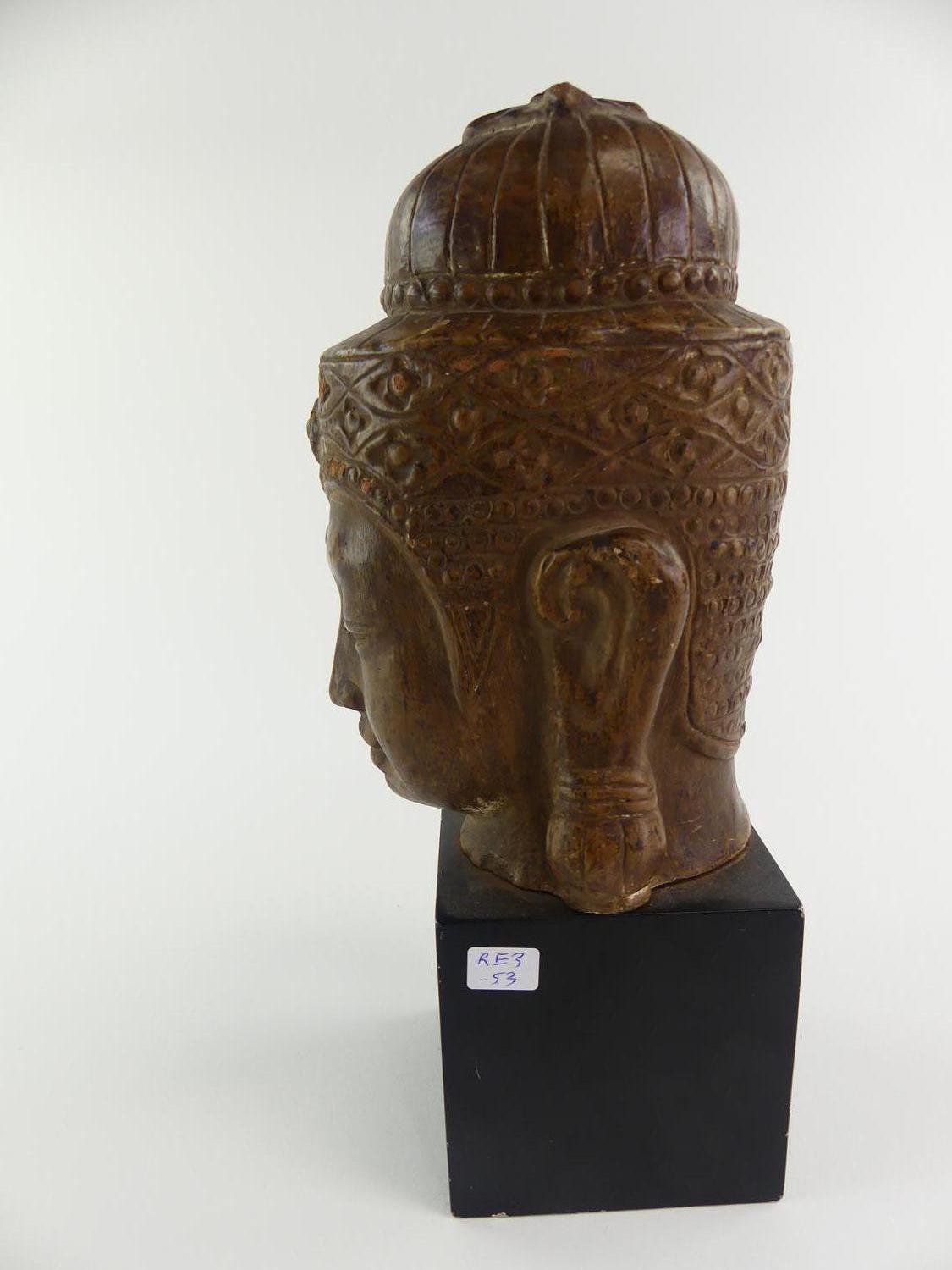 glazed pottery buddha head on stand, ht. 12 1/2"