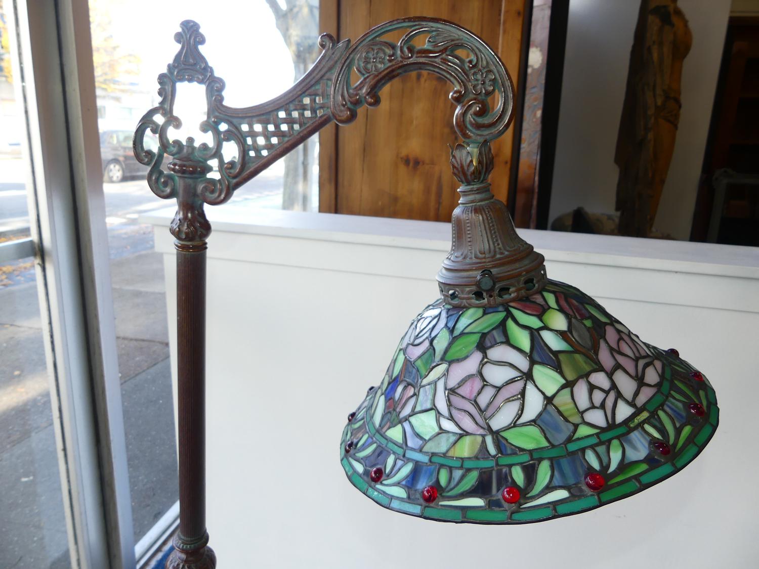 tiffany style bridge lamp, ht. 57"