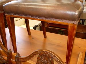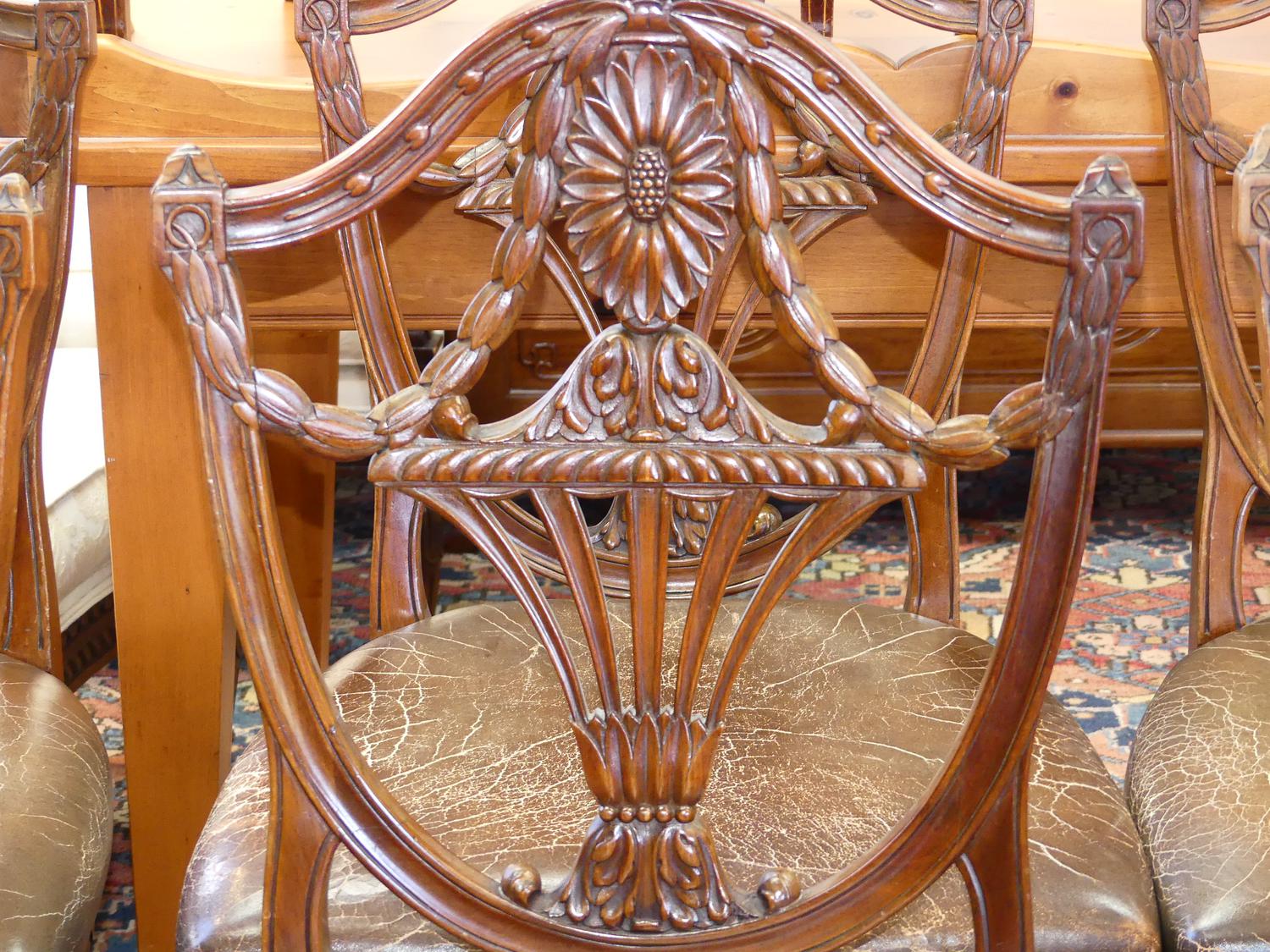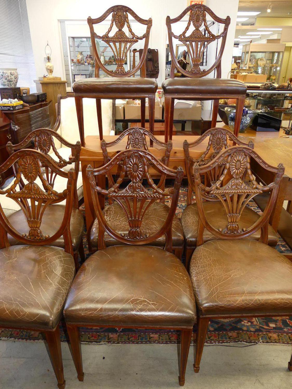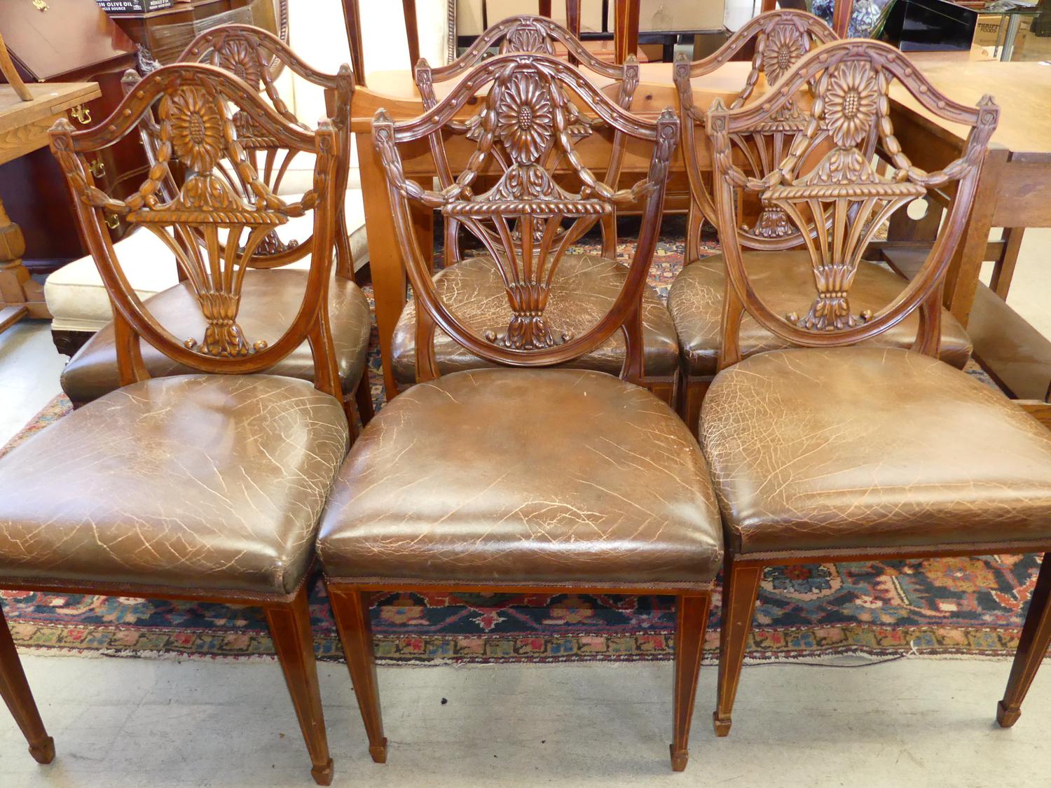 set of eight hepplewhite style carved and inlaid mahogany dining chairs