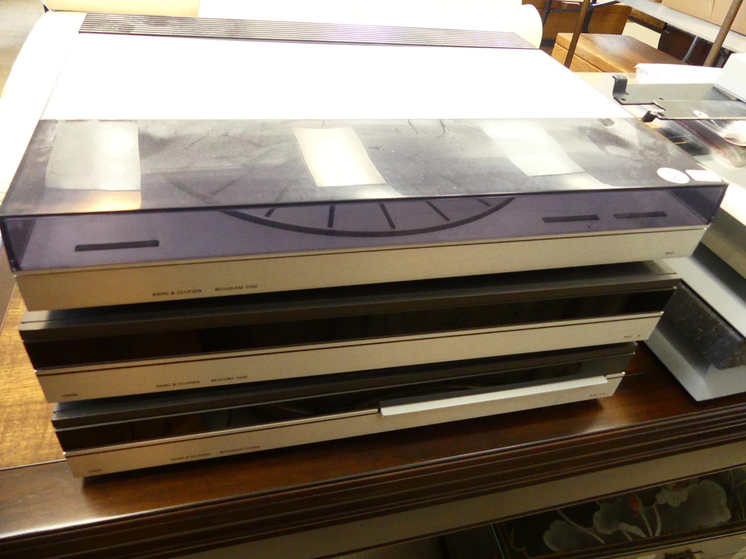 bang & olufsen beogram 5500 three component stereo, record player, cd player and tape with wall speakers