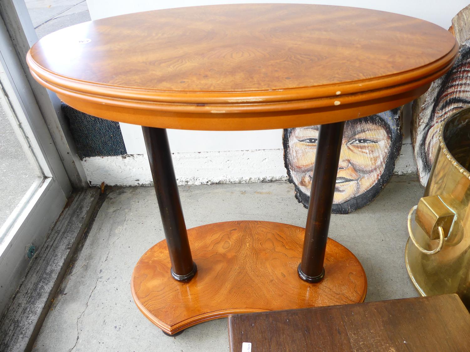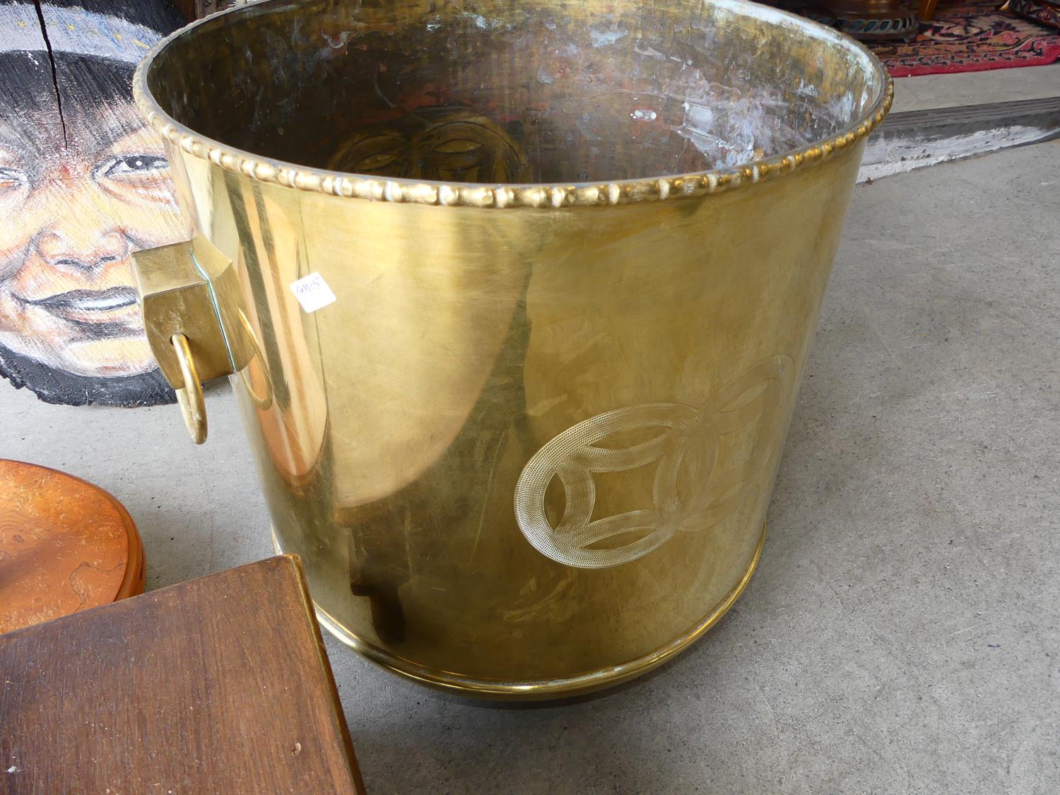 side table, brass jardinere and footstool