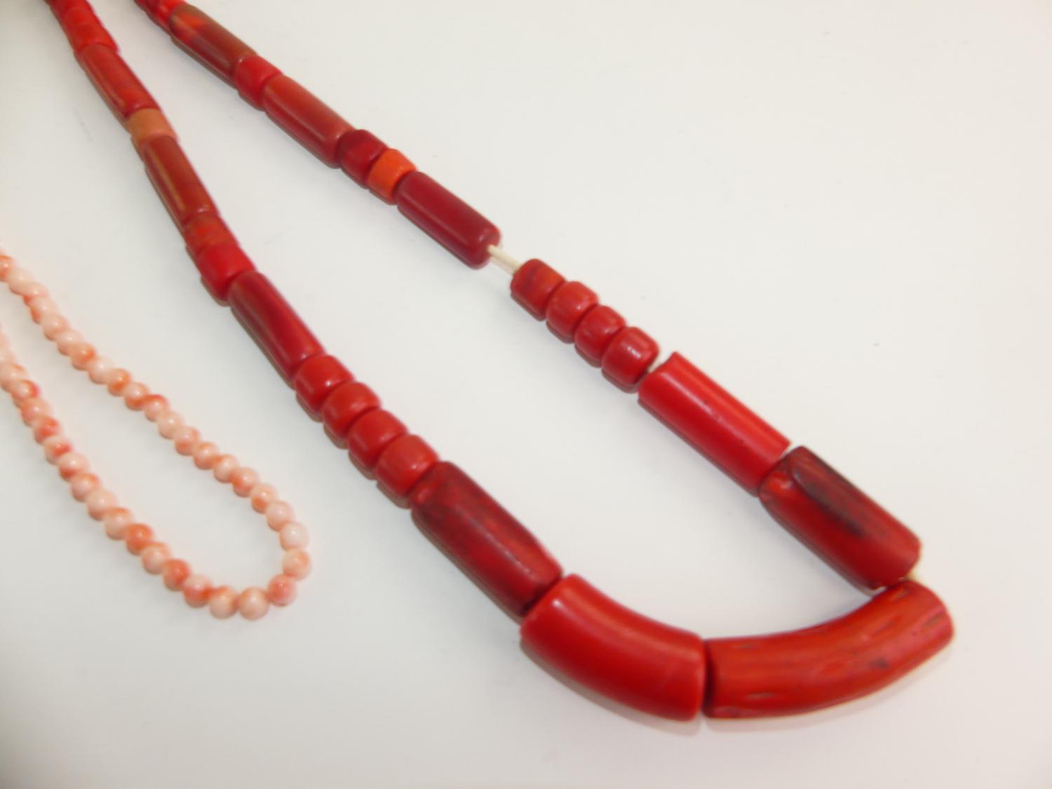 tibetian sherpa coral(glass) necklace, with angelskin coral bead necklace