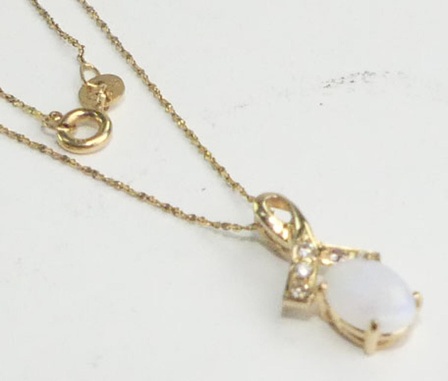 14k opal diamond pendant on a 10k gold chain, total weiging approx 1.9grams, 18" in length