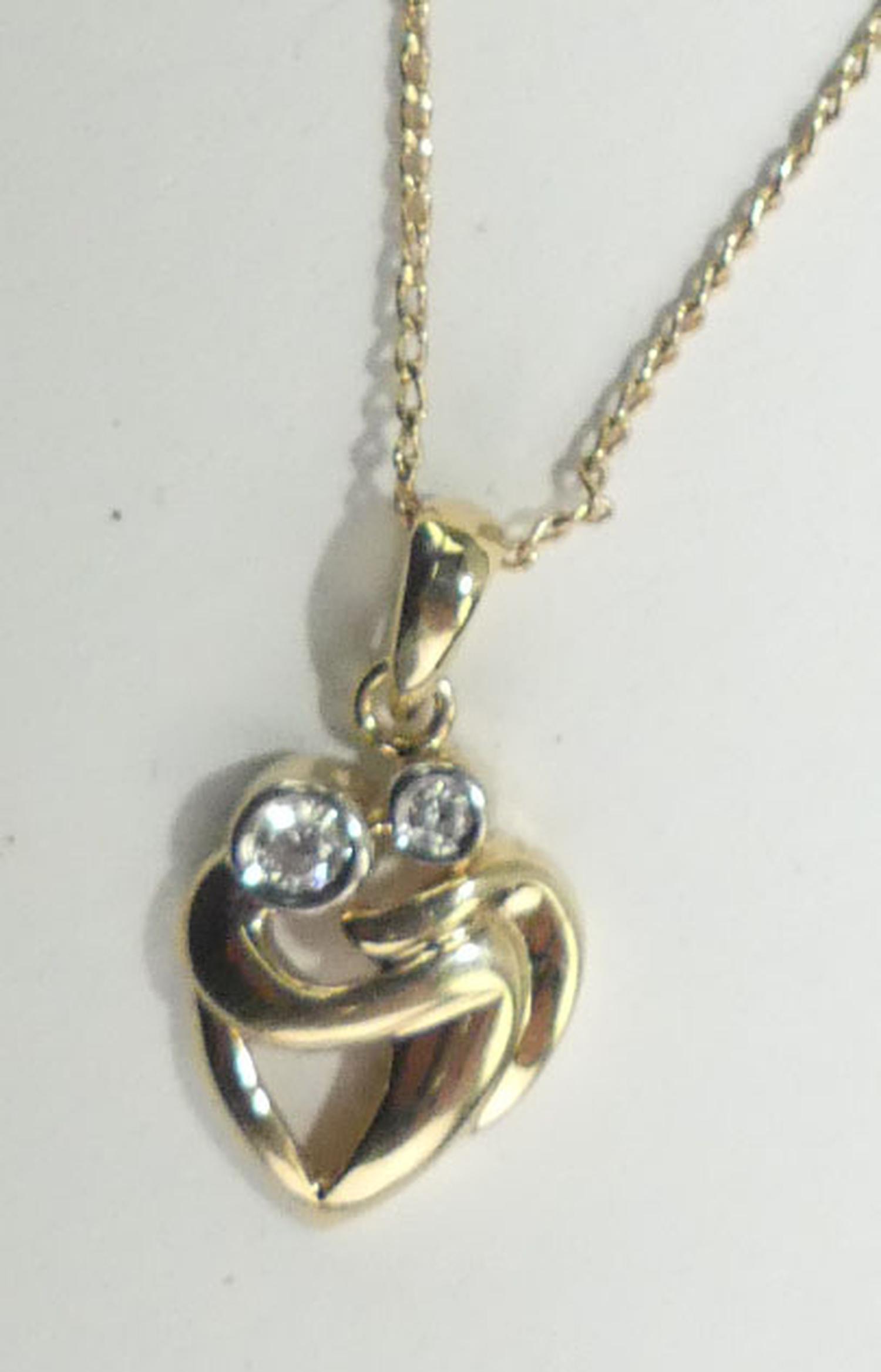 10k yellow gold diamond pendant necklace, weighing approx 3.2 grams, chain 27"