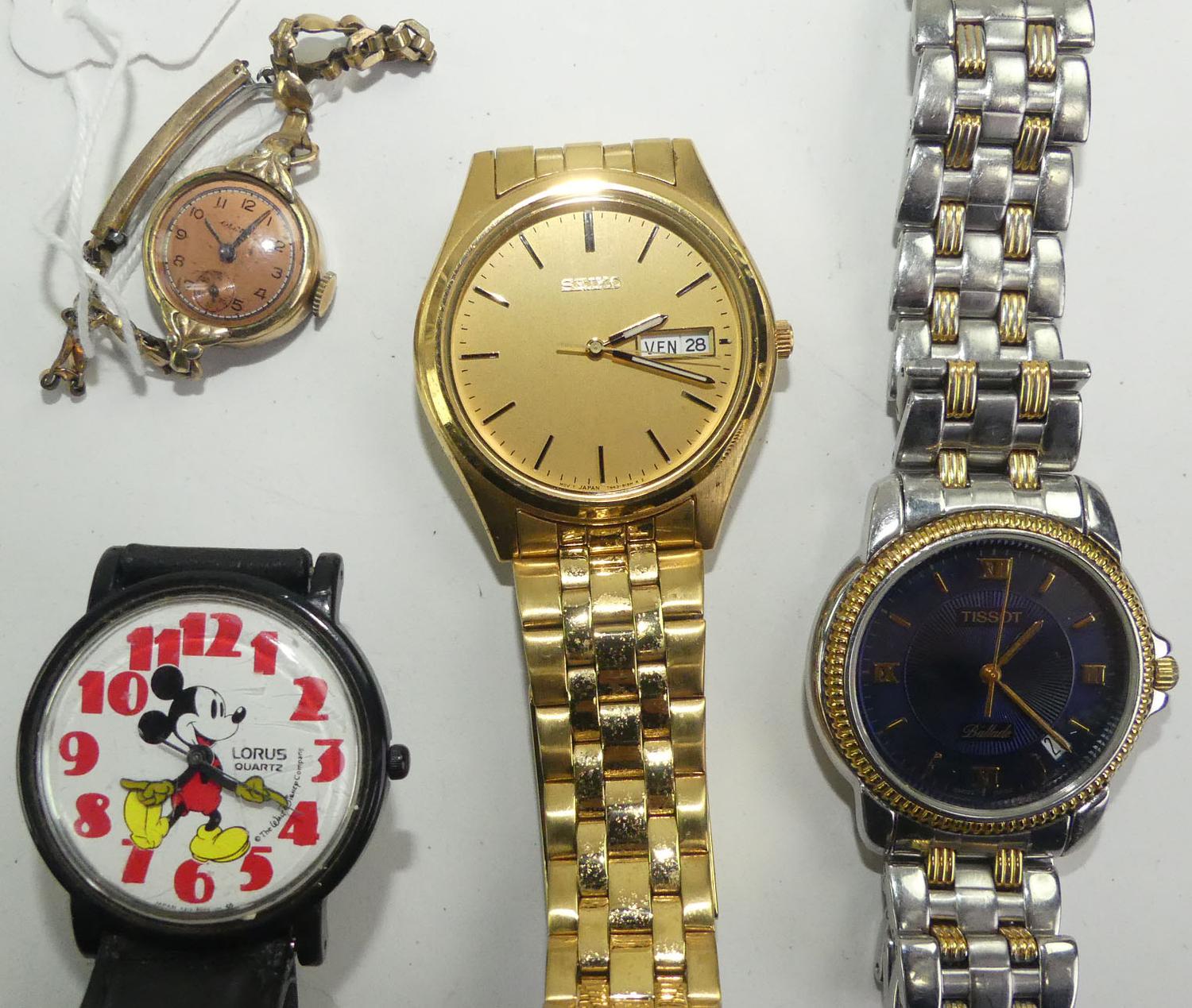 gents tissot bellini and seiko watch, with mickey and ladies mechainical watch