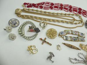 lot of vintage costume jewelry including enamel brooch and bracelet