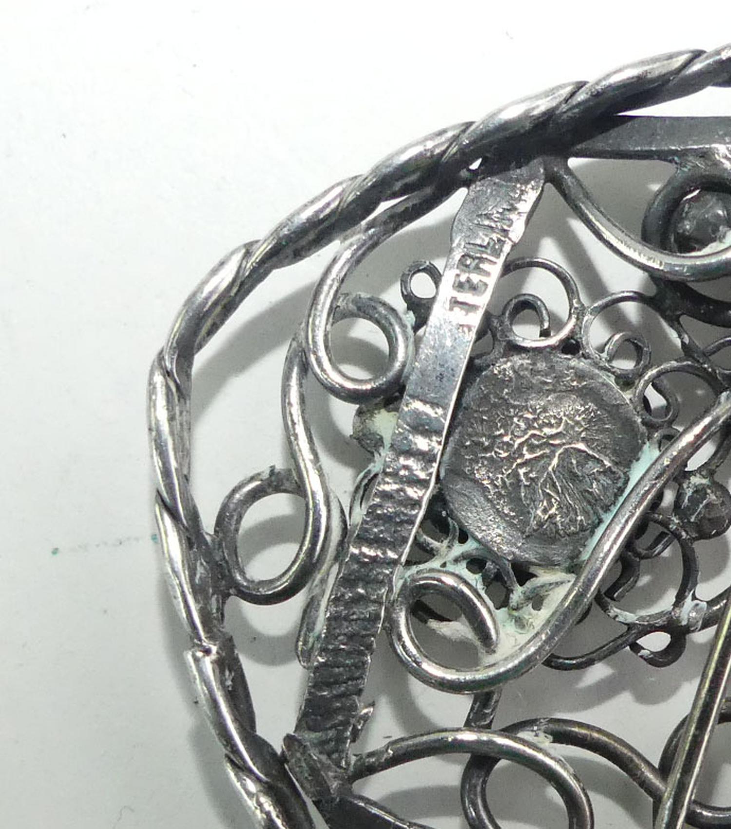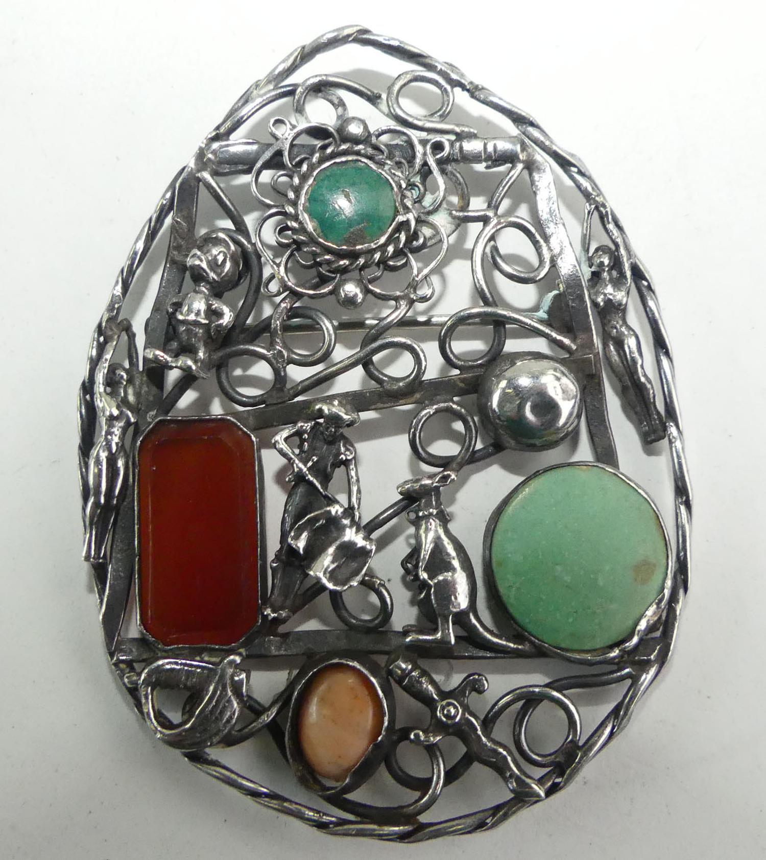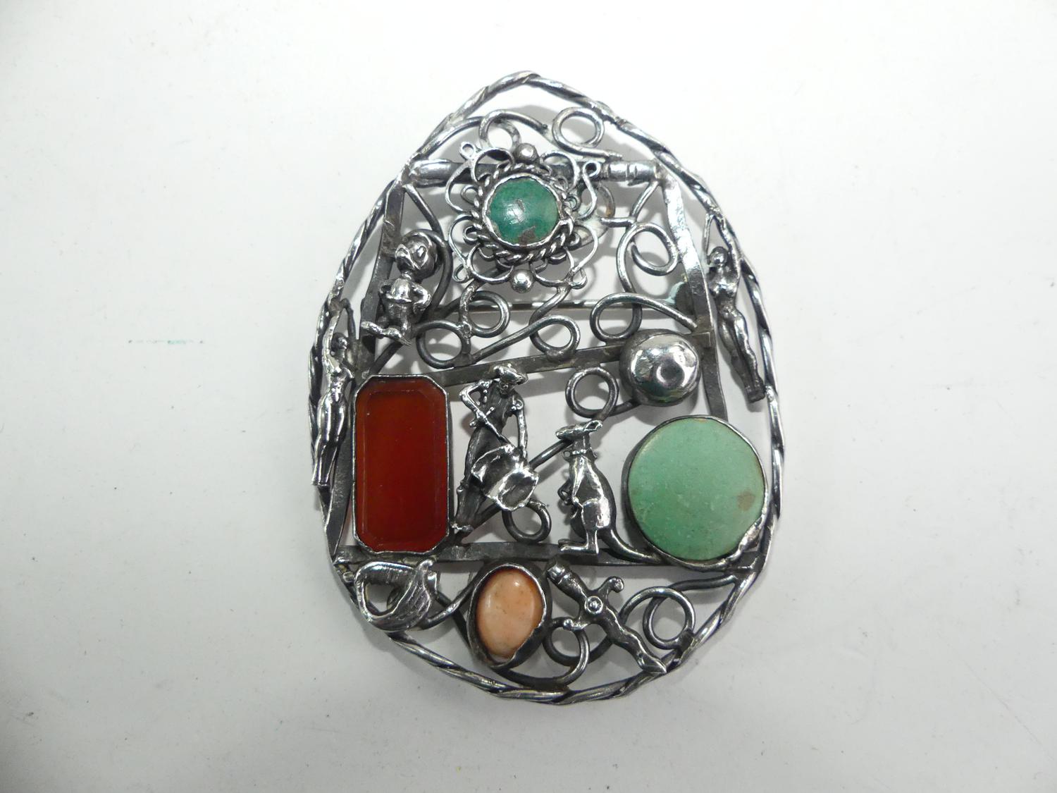 artist handmade sterling silver pendant mounted with gems, 3" x 2 1/4"