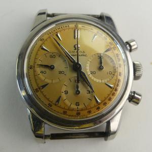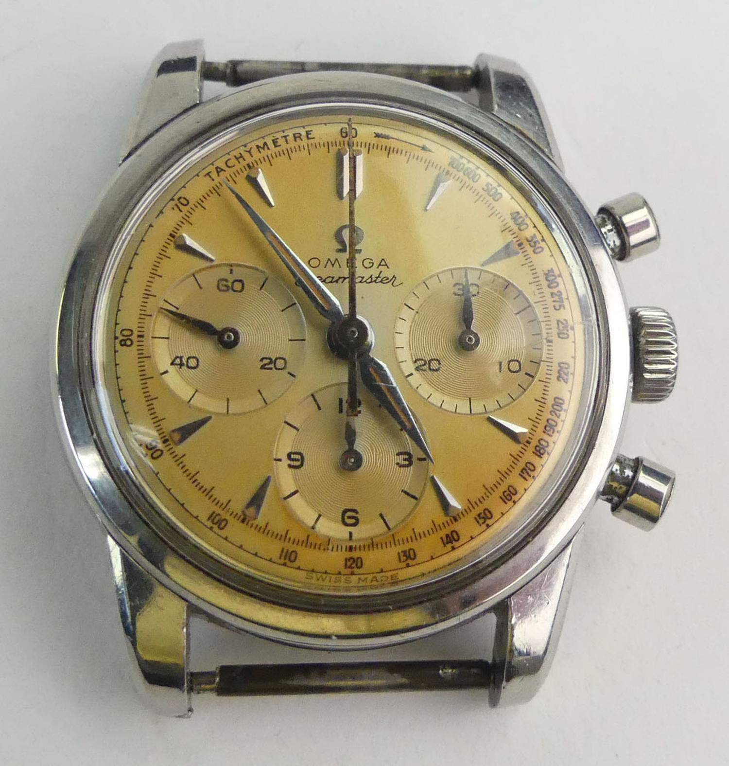 omega seamaster stainless steel chronograph manual wind watch, 1958, no band