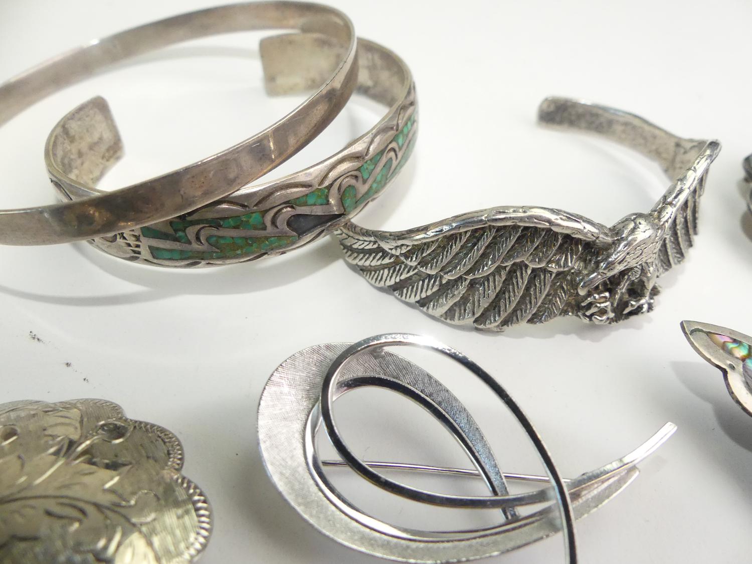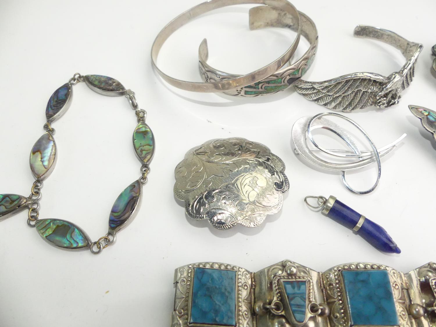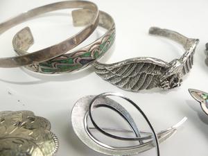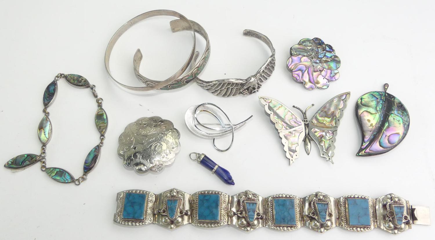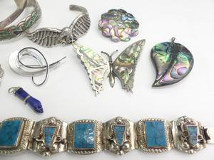 lot of mexican albalone shell alpaca and sterling items