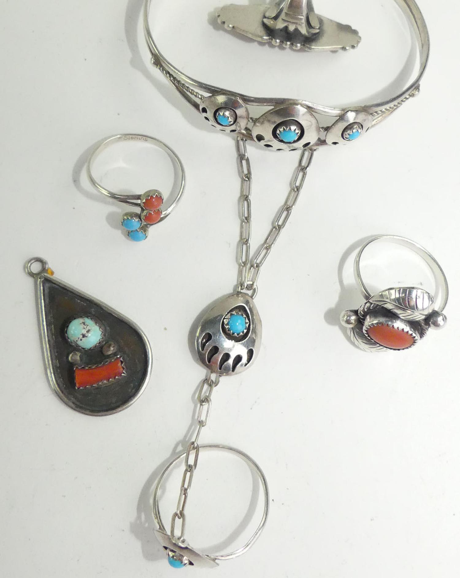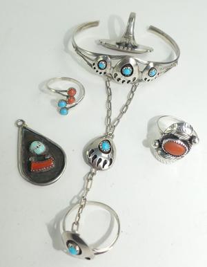 lot of navajo sterling turquoise coral jewelery, 30 grams