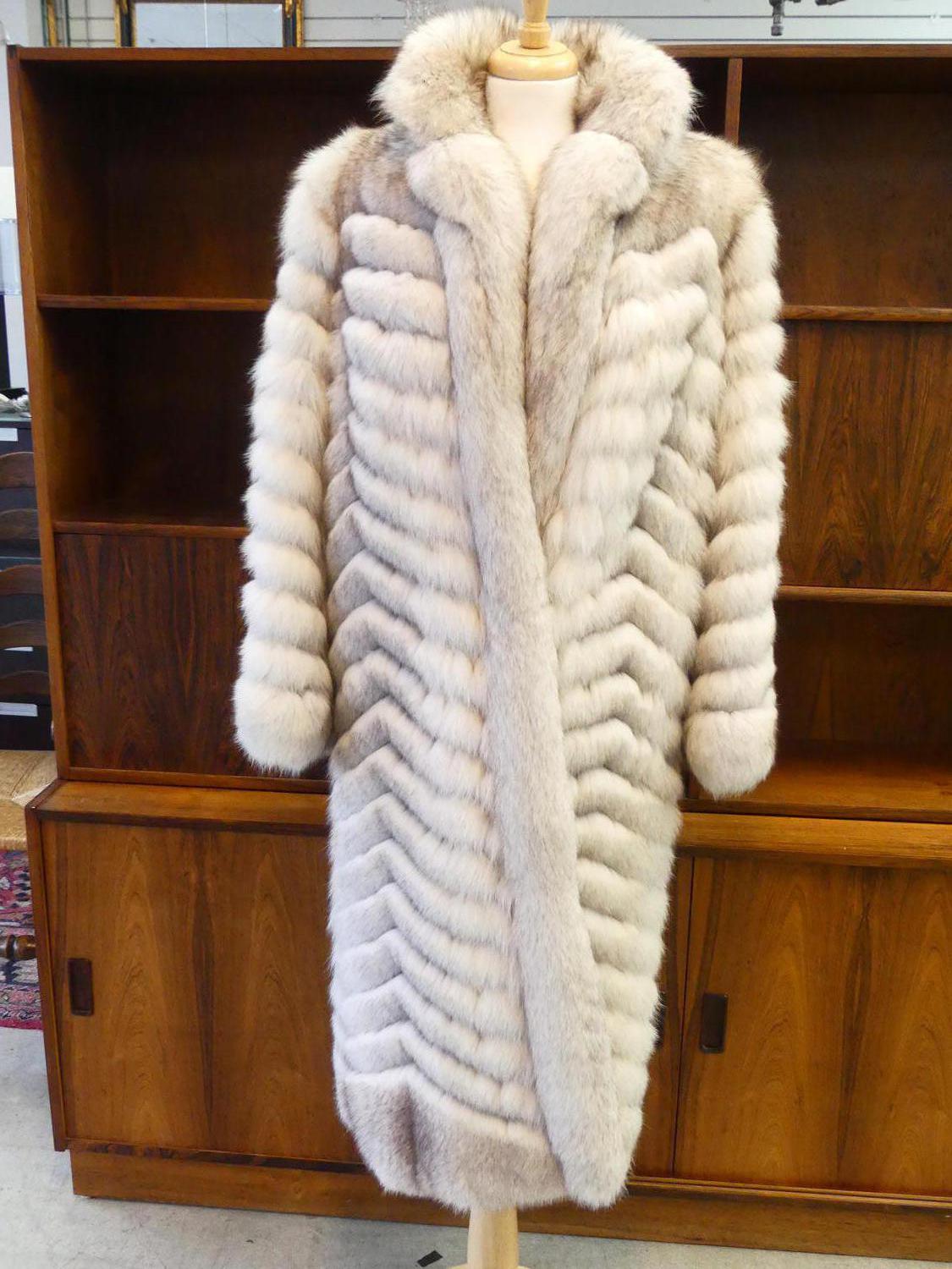 full length silver blue fox fur coat, size 10