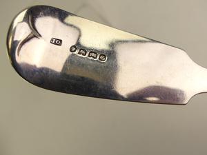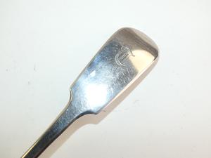 early victorian sterling silver stuffing spoon, john osment, exeter 1843, length 12 1/4", 130 grams
