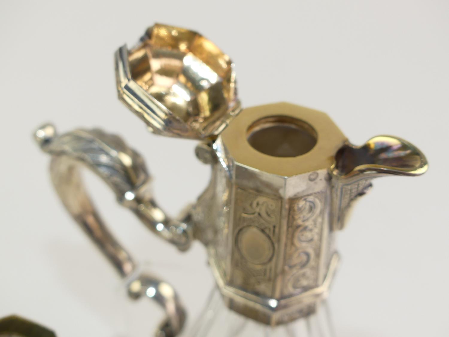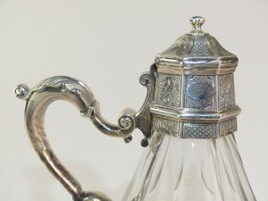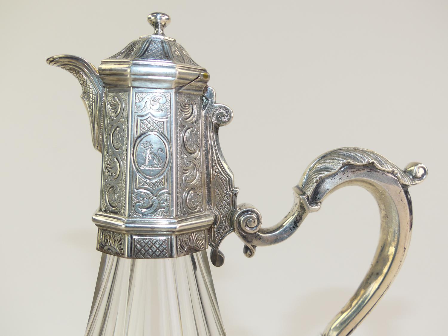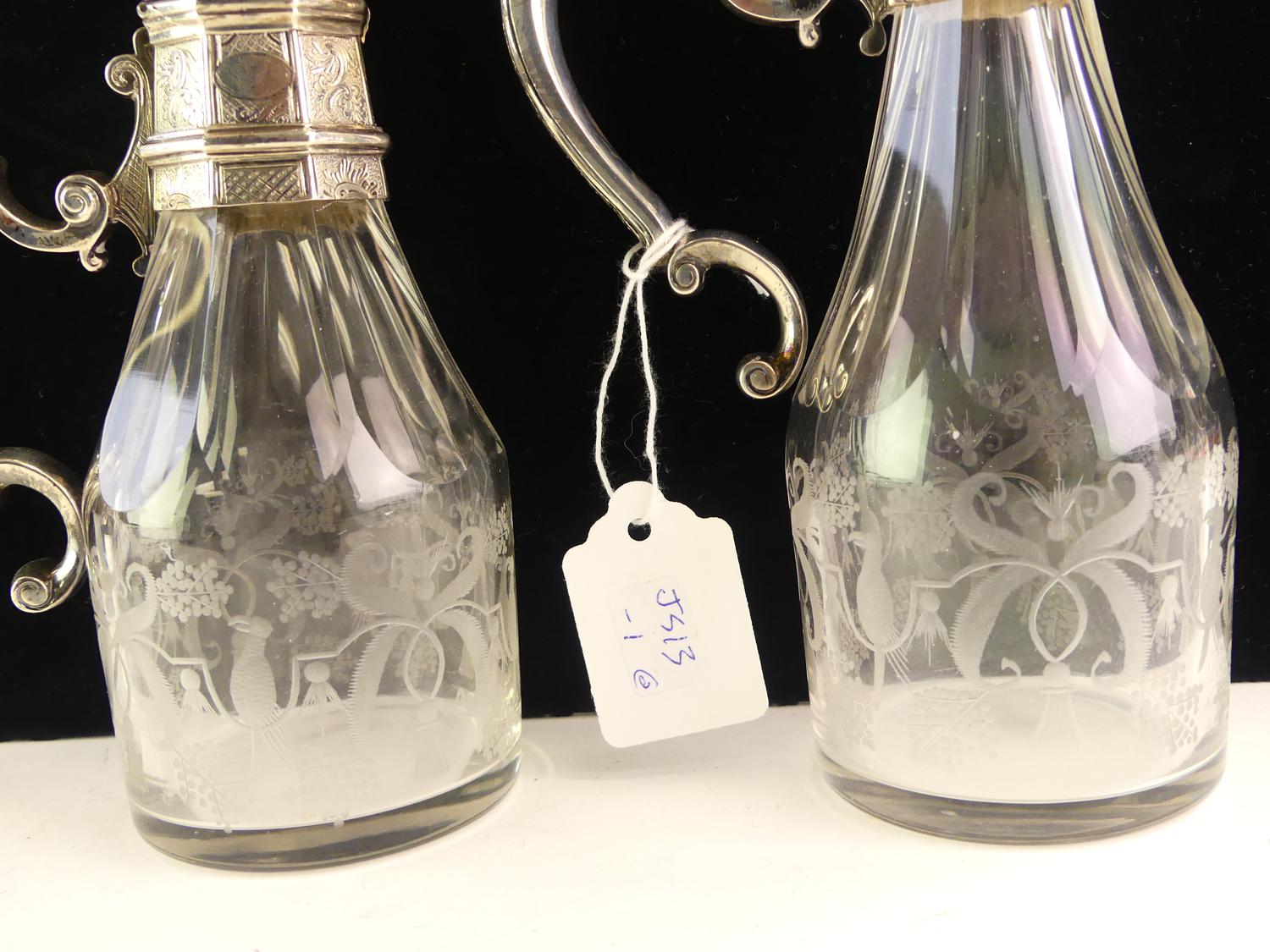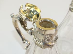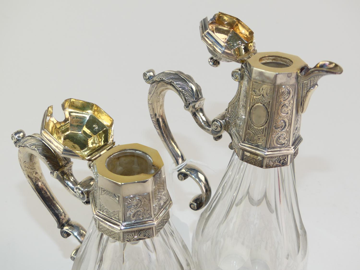 pair of william iv irish sterling silver and etched glass bottles, henry flavelle, dublin 1836, ht. 7 1/2" and 6"