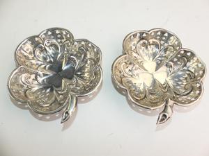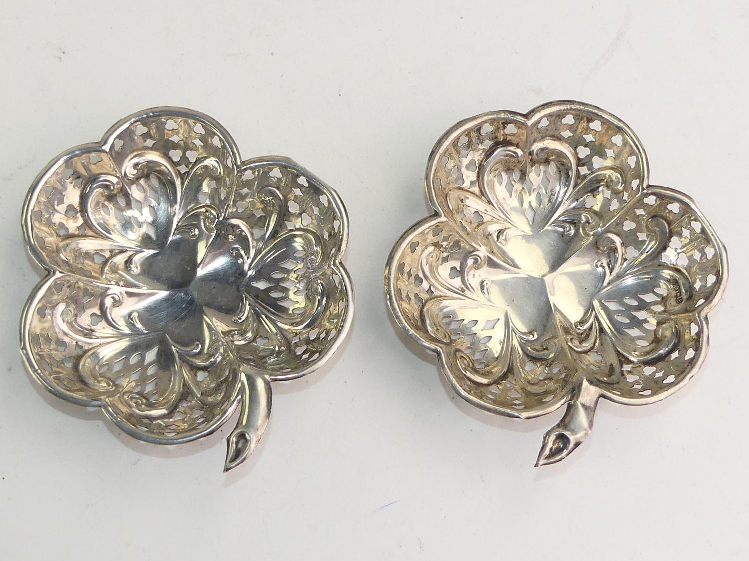 hallmarked sterling silver shamrock-shaped pierced dishes, 4 1/4" x 43 grams