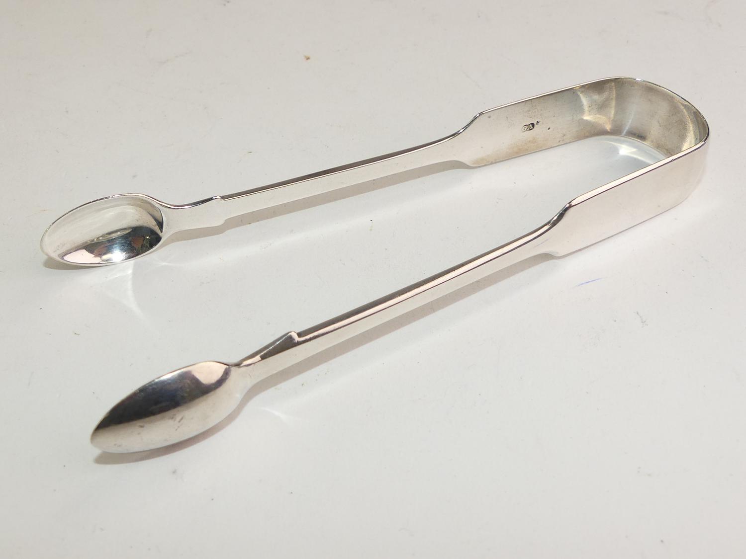 early victorian sterling silver sugar tongs, chawner & co - george williams adams, london 1865, 55.2 grams