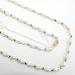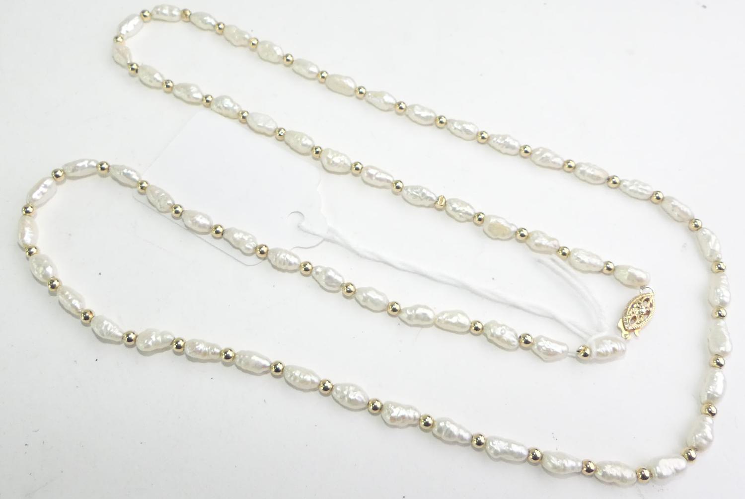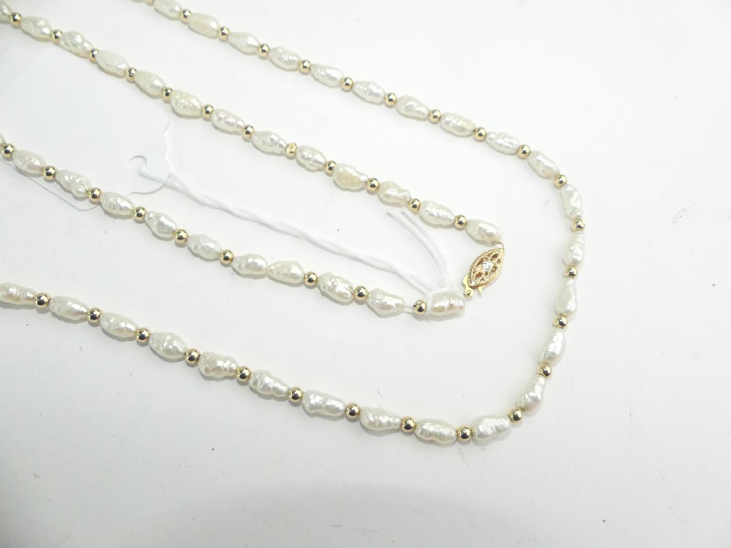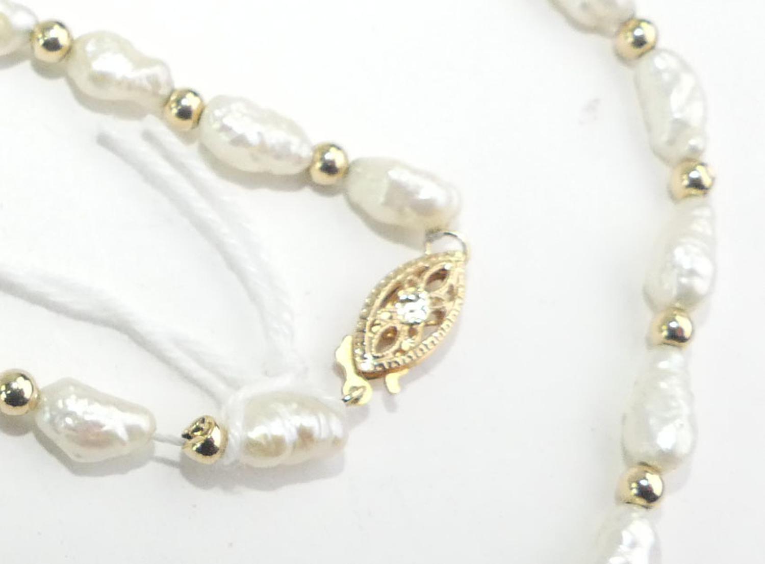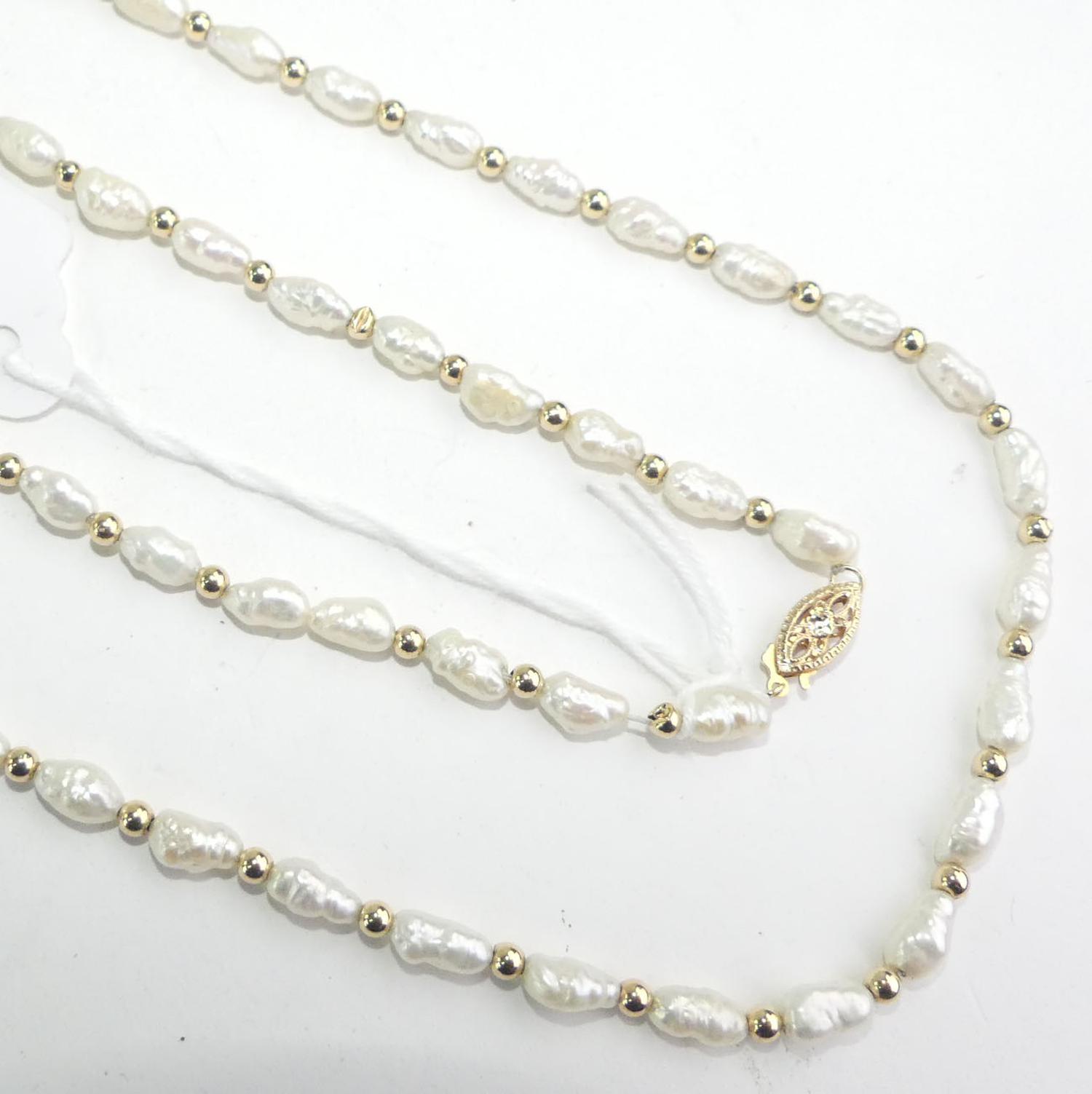 14k yellow gold and freshwater pearl necklace, length 12 1/2"
