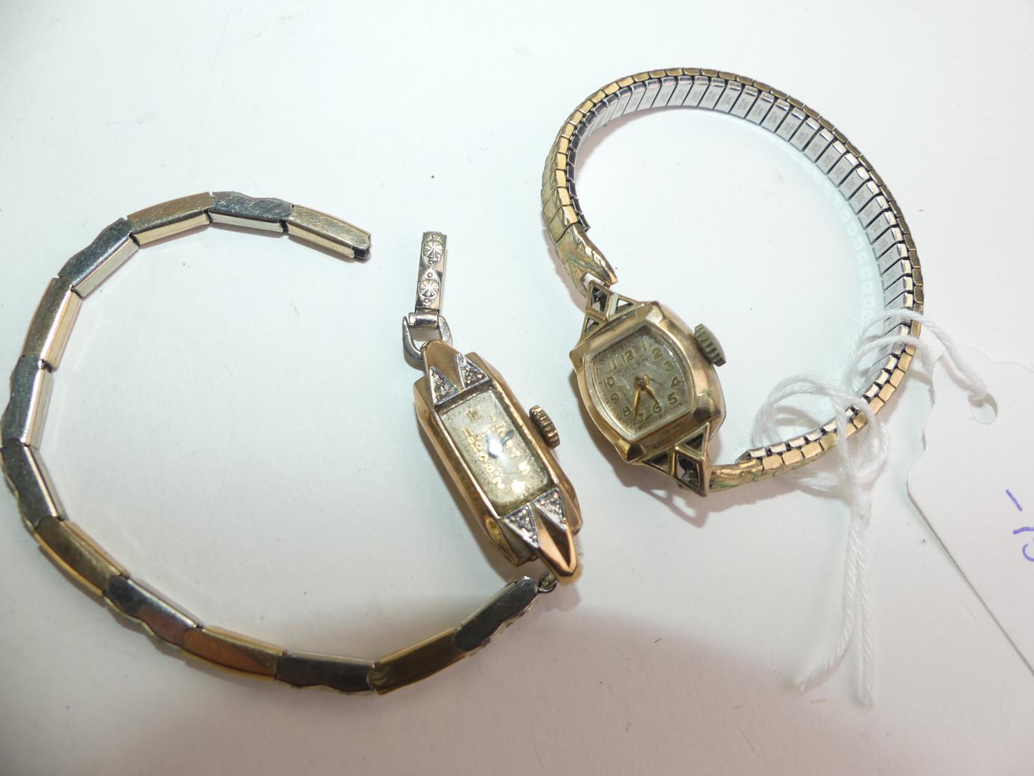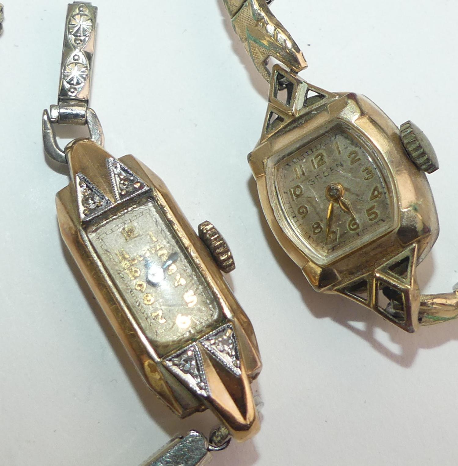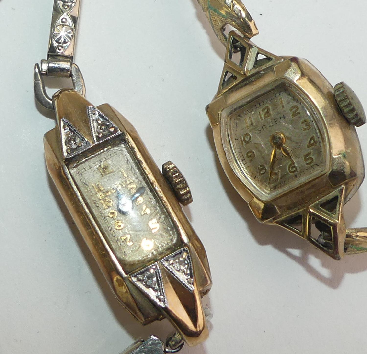 ladies art deco 2 diamond gold filled bulova watch with gruen watch