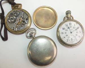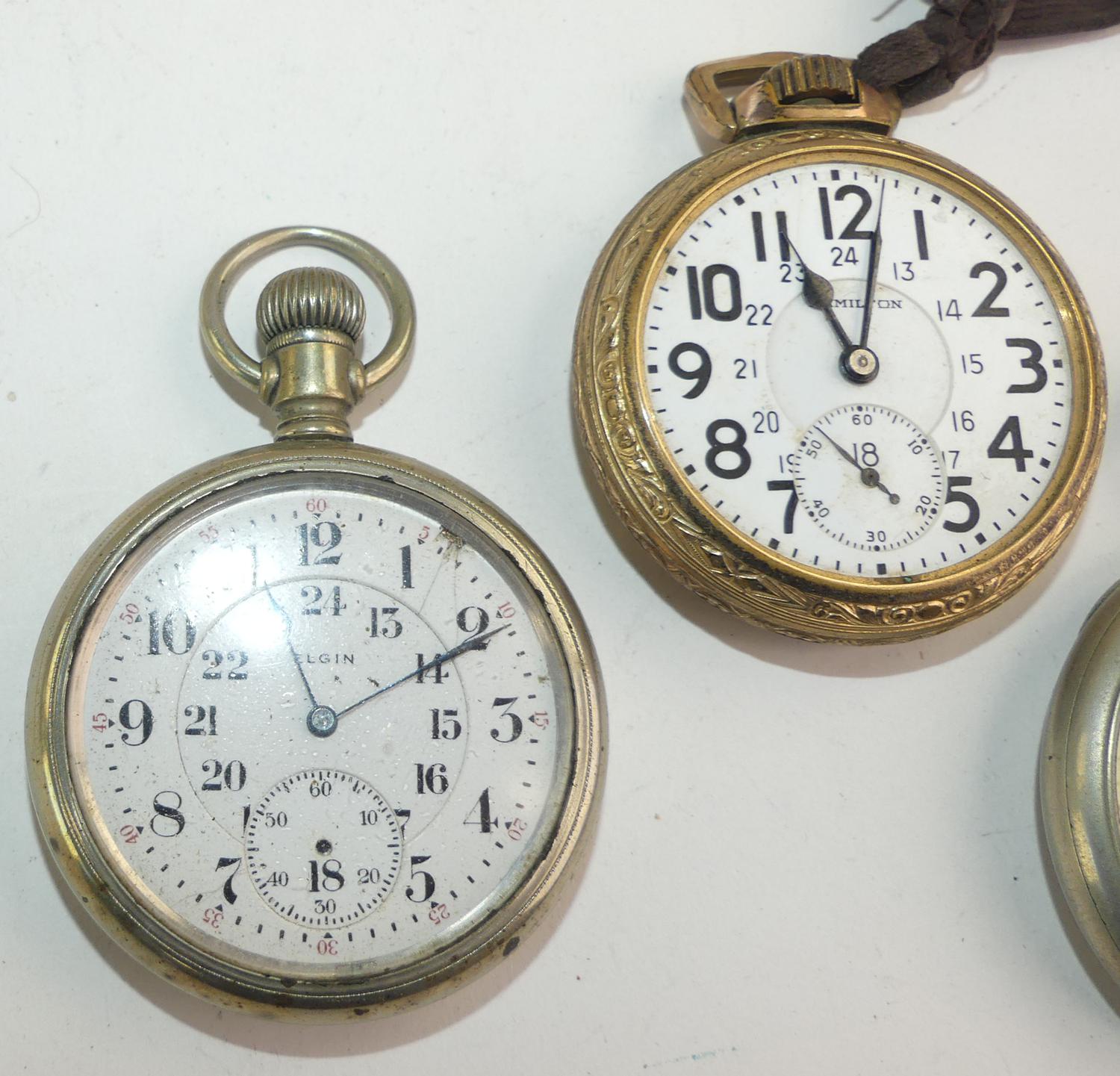 3 victorian openfaced pocketwatches, elgin, hamilton, doxa